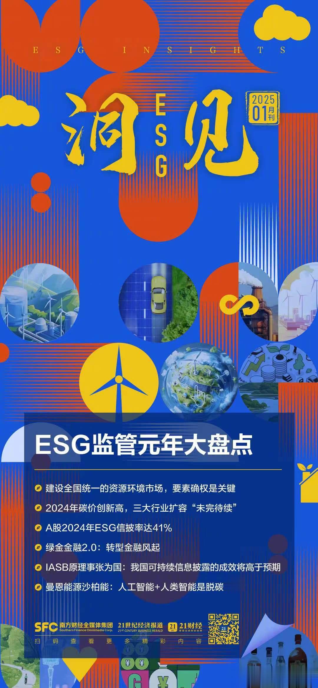 2024年,是成果丰硕的一年。从中央部署全面推进美丽中国建设新篇章,到加紧经济社会发展全面绿色转型。全国碳市场首次提出扩围,多家券商获准参与碳交易,ESG信披《指引》《指南》等相关政策密集发布。岁末之际,《洞见ESG》1月刊深度盘点ESG监管元年各行业年度关键词,一同回顾2024年绿色发展大事件,探寻2025年的新岁伊始前进方向。