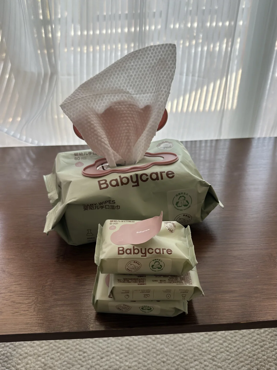 意外发现小屁孩的湿巾是真好用。 去到每一个有小孩的家里基本都会有babycare的身影 也是好奇入手的,一用一个不吱声!!! 他们家的紫盖纸巾用完是真的离不开了呀!!😰 真的后悔没有早点发现,回到家乡就是各种游玩各种吃喝,春节啥都能不带唯独它不能不带 一抽一抹真的干干净净整个人都安心了 超级厚实一张,而且水份也特别足,用的还是七重过滤过的EDI纯水,我这个敏敏肌都能放心用 主要是这个有便携装放包包里太方便了!!!