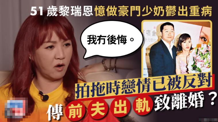 1996年,黎瑞恩遇到金利来集团三公子曾智明,一头栽进爱情里。不过男方的父母并不喜欢她,毕竟是“豪门”嘛,挑选儿媳有自己的一套“标准”。