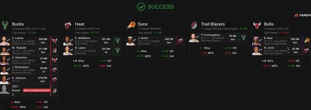 据悉,雄鹿队将得到拉文、塞布尔及未来选秀权;热火队收获米德尔顿和大洛佩斯;太阳队则将巴特勒招入麾下;公牛队则迎来比尔和约维奇。关键在于比尔的态度,他最终同意加盟雄鹿,放弃了前往太阳的机会。比尔此举或为了追逐总冠军,选择与字母哥、利拉德组成超级三人组,增强雄鹿在东部乃至全联盟的竞争力。