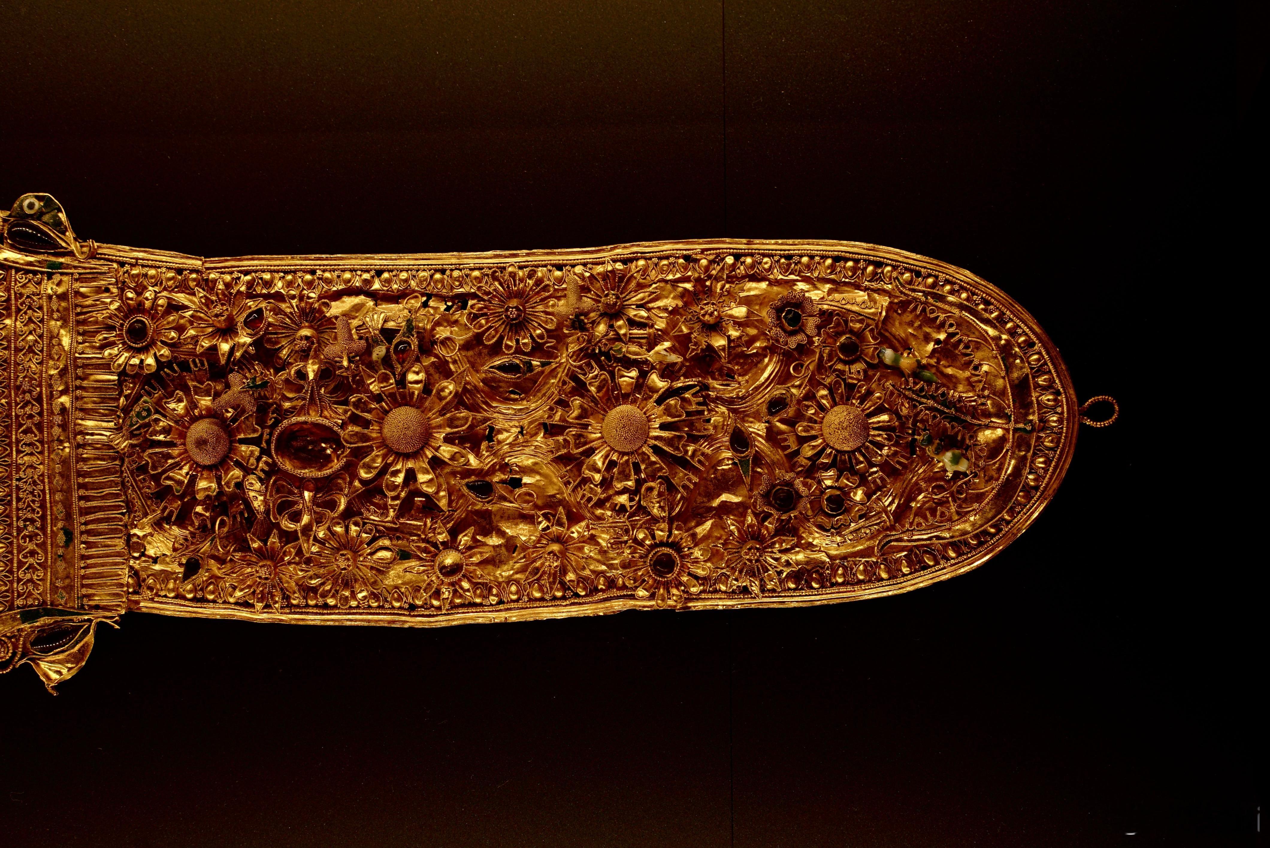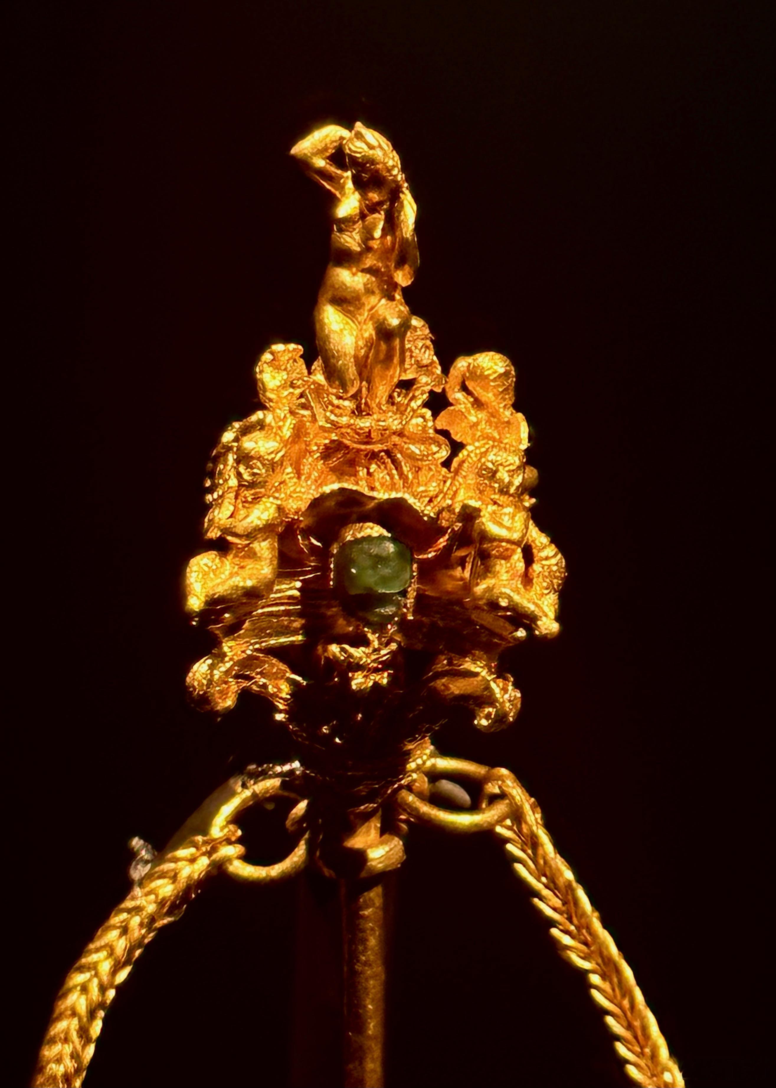 昨天看了贝纳基博物馆的新展览《黄金艺术:希腊化时期的珠宝》。在希腊化时期,珠宝制作艺术达到了前所未有的高度。这一时期的珠宝不仅体现了卓越的工艺与创新技法,还承载了丰富的文化、社会和宗教意义。金匠们在继承古典希腊艺术传统的基础上,吸收了波斯、埃及和近东的影响,创造出兼具地域特色与高度精湛技艺的珠宝作品。 这次展览聚焦于这一辉煌时代的金工艺术,并探讨了希腊化珠宝的图像语言传达的象征意义、反映社的会等级、身份认同与财富象征、以及陪葬珠宝的种类如何根据死者的年龄、性别和社会地位而有所区分(比如图7展现了墓葬中金饰的状态)等细节问题。个人认为这次展览最大的亮点是对当时珠宝制作工艺的复原。展品中有一套出土于波黑的公元前二世纪金匠工具,这些考古发现为研究古代金工技艺的生产过程提供了新的实证材料。 展览也解析了黄金珠宝的制作技法,如炸珠工艺、镶嵌工艺、金箔装饰和金丝编织等。