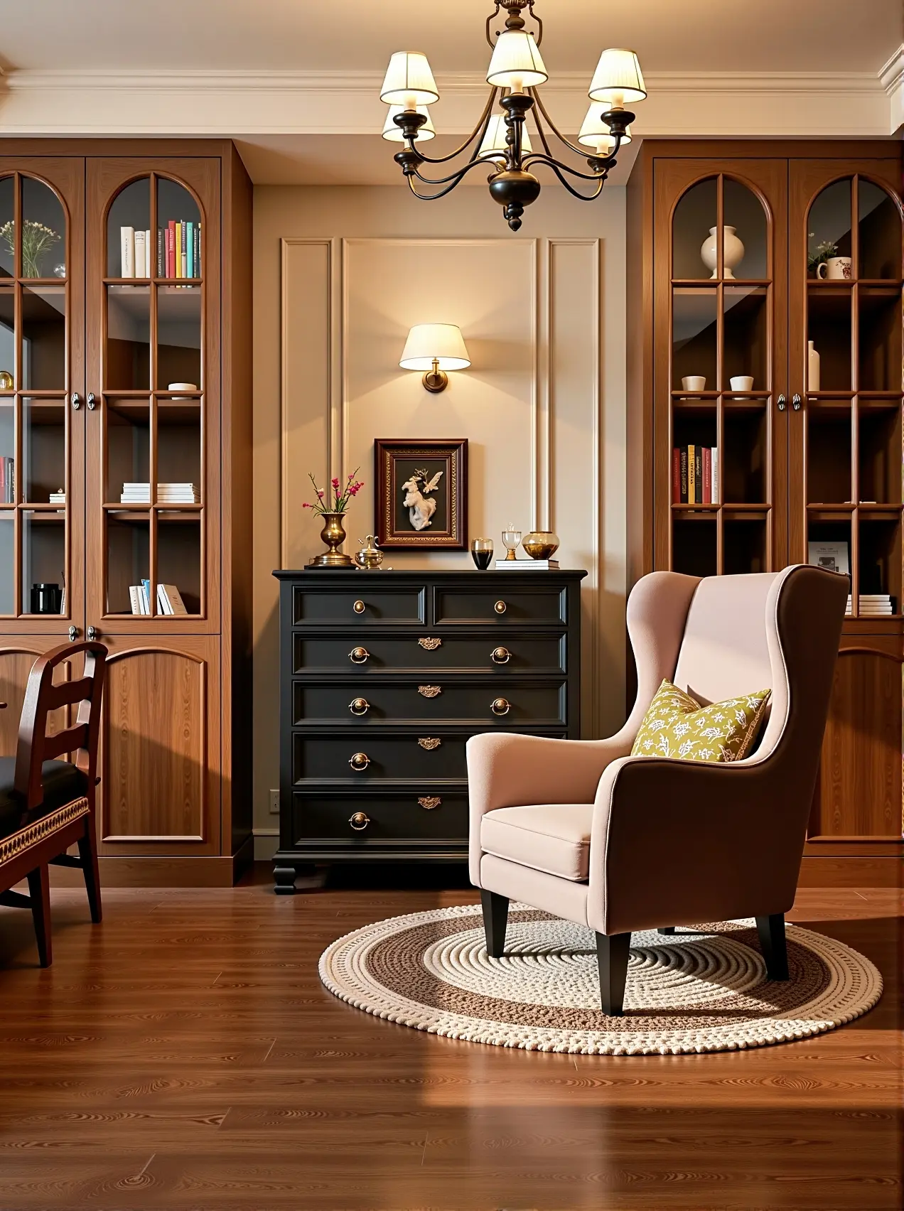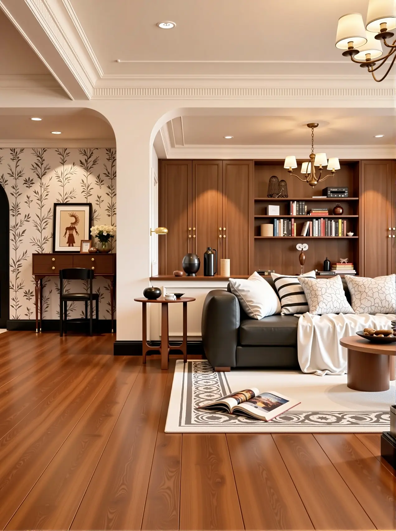 法式焦糖复古风装修与胡桃木家具的完美结合,不仅是一种装修风格,更是一种生活品味,浪漫就电影的复古氛围感,温馨又耐看