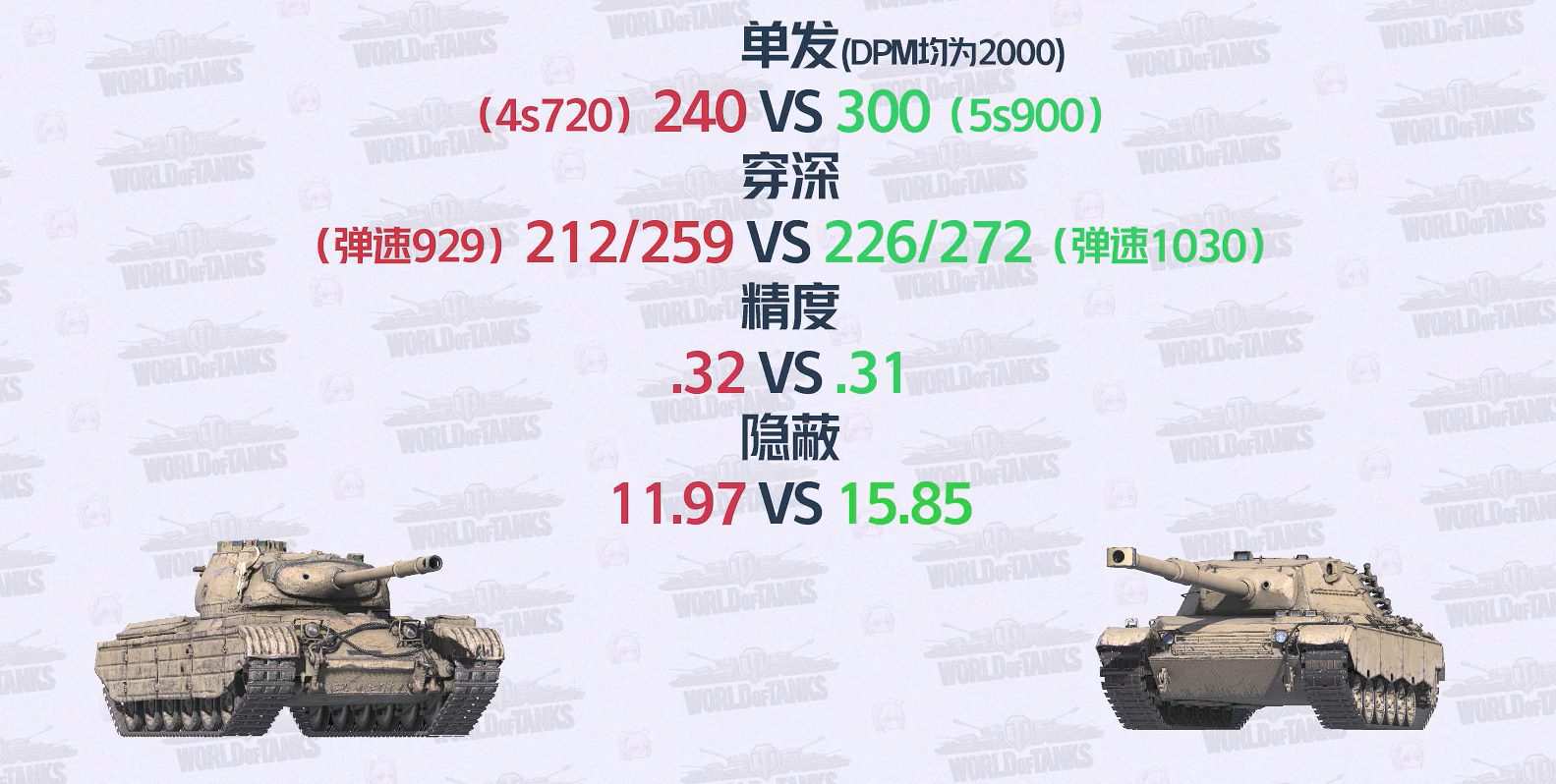 六号中坦样车在牺牲了5公里极速、100血量和一点三扩后,换来了输出端的更大优势。主炮单发伤害300,打出900输出仅需5秒,效率超过了PM35/46的4秒720。炮弹穿深也以226/272碾压同僚的212/259。精度多一点,隐蔽则是大跨步的超越了PM35/46。