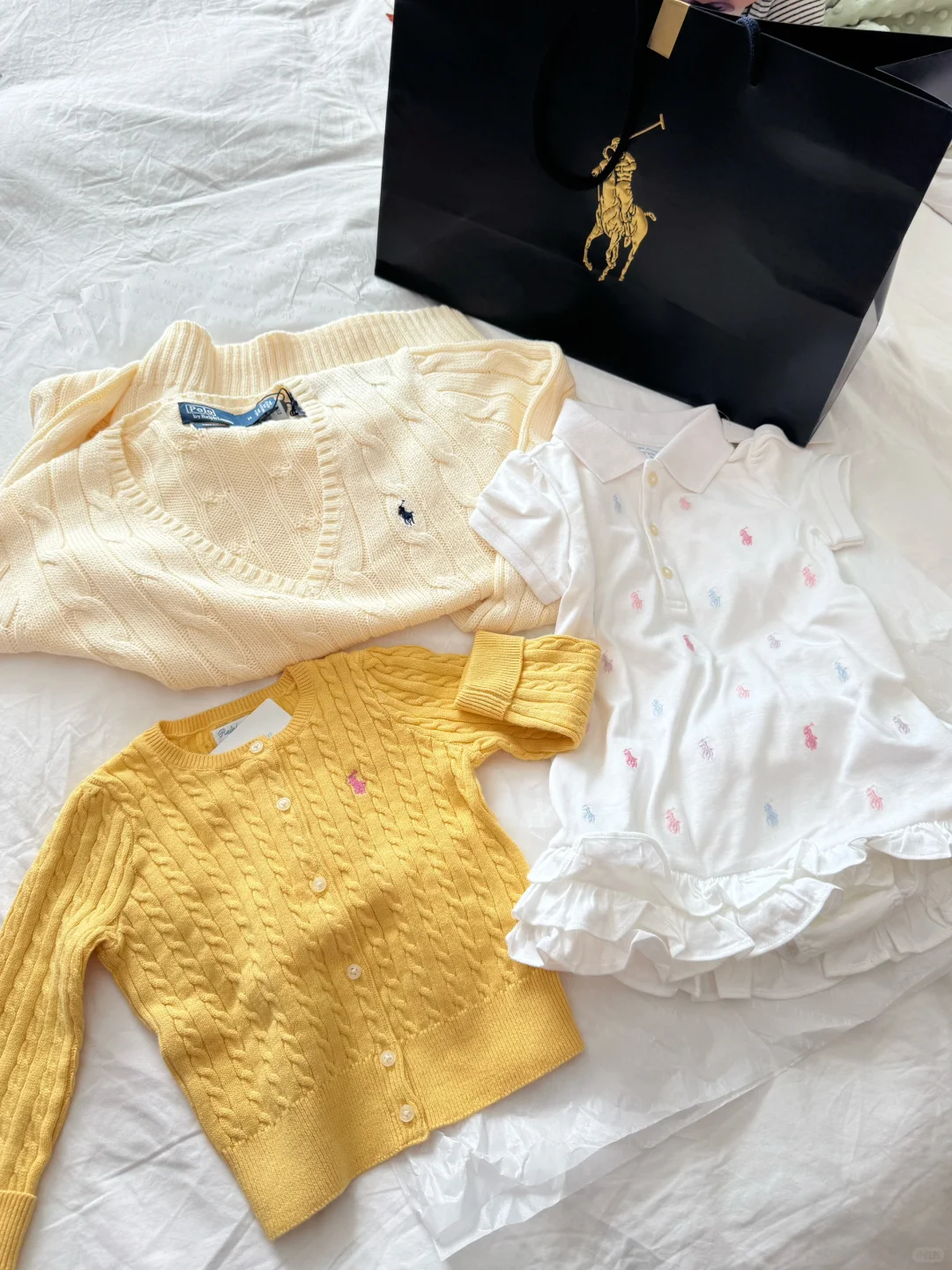 匆匆试了下拉夫劳伦!果然很好看[斜眼R]白色很显气质,随便搭都可以!还给宝宝买套!宝宝颜色色彩更丰富[喝奶茶R]喜欢!