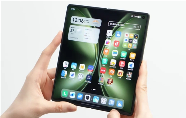 首先,它真的很轻,拿在手里轻盈得像翻书一样自在,完全没有传统折叠屏那种“拿着一块砖”的厚重感。其次,X Fold5可是实打实的高颜值,延续了经典的居中圆模组设计,并提供了三种时尚配色——青松(绿)、明白(白)和钛度(黑)。