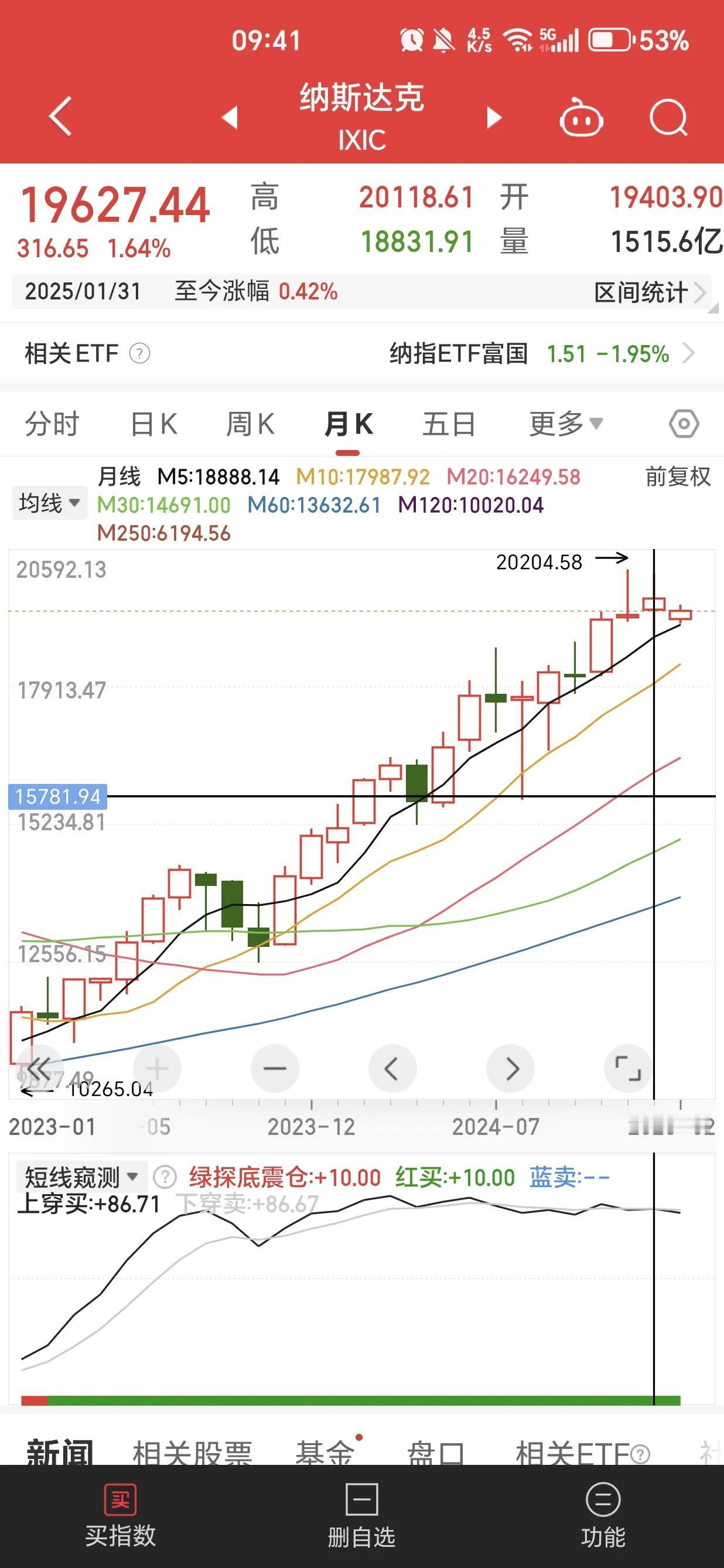 2025年1月投资纳斯达克指数基金报告。 受春节节日影响,2025年1月,纳斯达克指数基金收益整体跑输纳斯达克指数涨幅。 主要受场内基金溢价影响调节。但是纳斯达克指数收涨1.64%,总体收益依旧为增长,同时美股道琼斯指数上涨4.7%,收益明显超出预期。 明天为节后第一个交易日,目前受到因素影响,纳斯达克指数波动较大,道琼斯指数处于距离新高不远位置。 接下来,利用近期纳指的波动,逢低继续加仓场内ETF和场外华夏纳斯达克指数基金(虽然限购,但是100也要加,这是我的投资纪律),新年第一天,计划场内基金下跌就加。 对于美股纳斯达克的走势,国内很多投资者担心受到很多因素影响。其实不必要杞人忧天。预计2025年2月纳斯达克指数会继续新高增长。 美股实盘记录