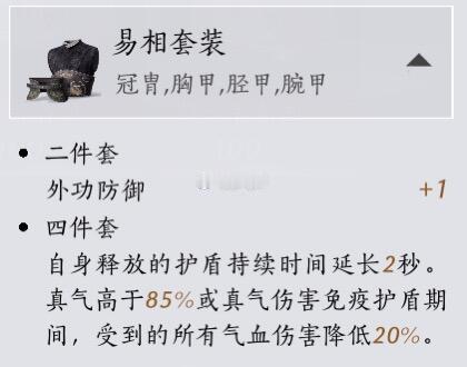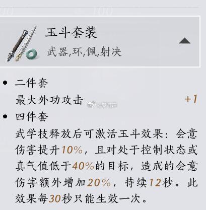 依旧拿无名长剑举例。与无名长剑最适配的套装是玉斗套和斗易套,玉斗增加了剑气的额外伤害和会意伤害,易相优化适配了长剑的护盾值。