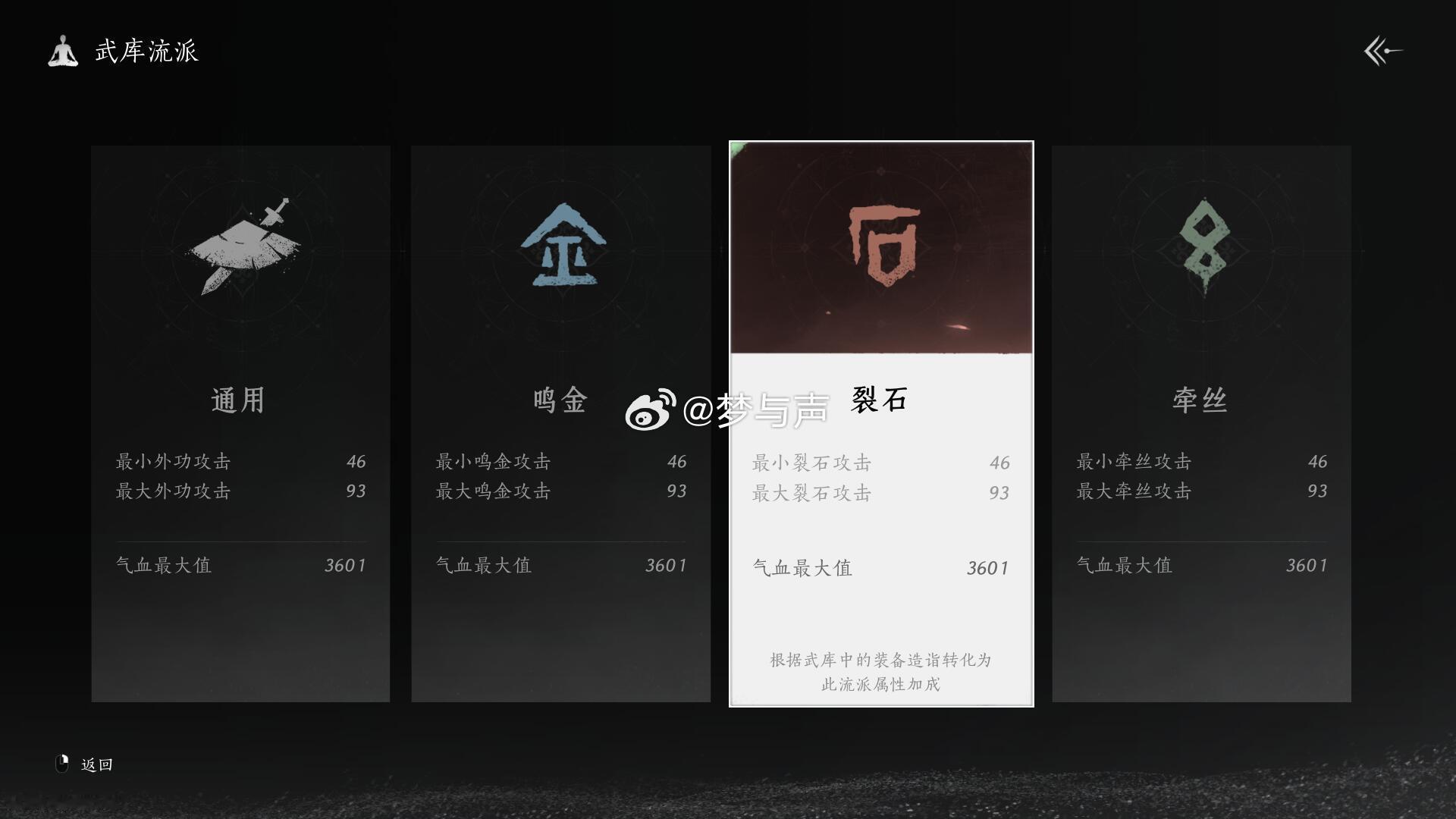 燕云十六声目前有12把武器,每把武器都有自己的攻击属性和战斗定位,12把武器两两结合在一起形成了6个武学流派。