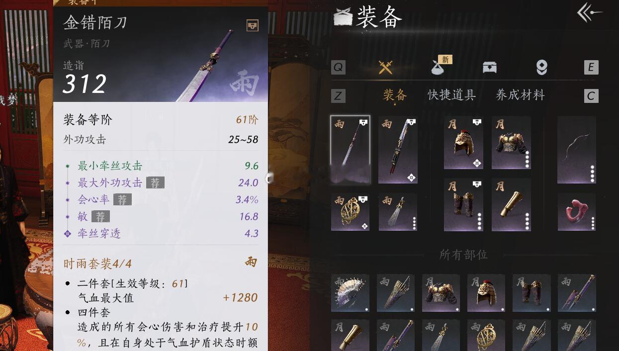 *要想提高长剑的伤害,我们需要更高的会意率,更高的外功攻击,更高的剑增伤和鸣金攻击,要想提高扇子的奶量,我们需要更高的会心率以及外功攻击等等。