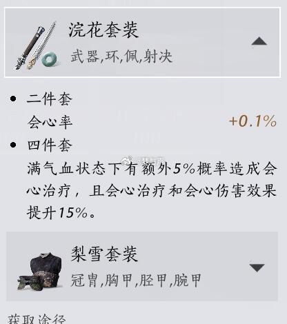 奶扇需要的是浣花套和黎雪套,二者增加了奶扇需要的会心和奶量。