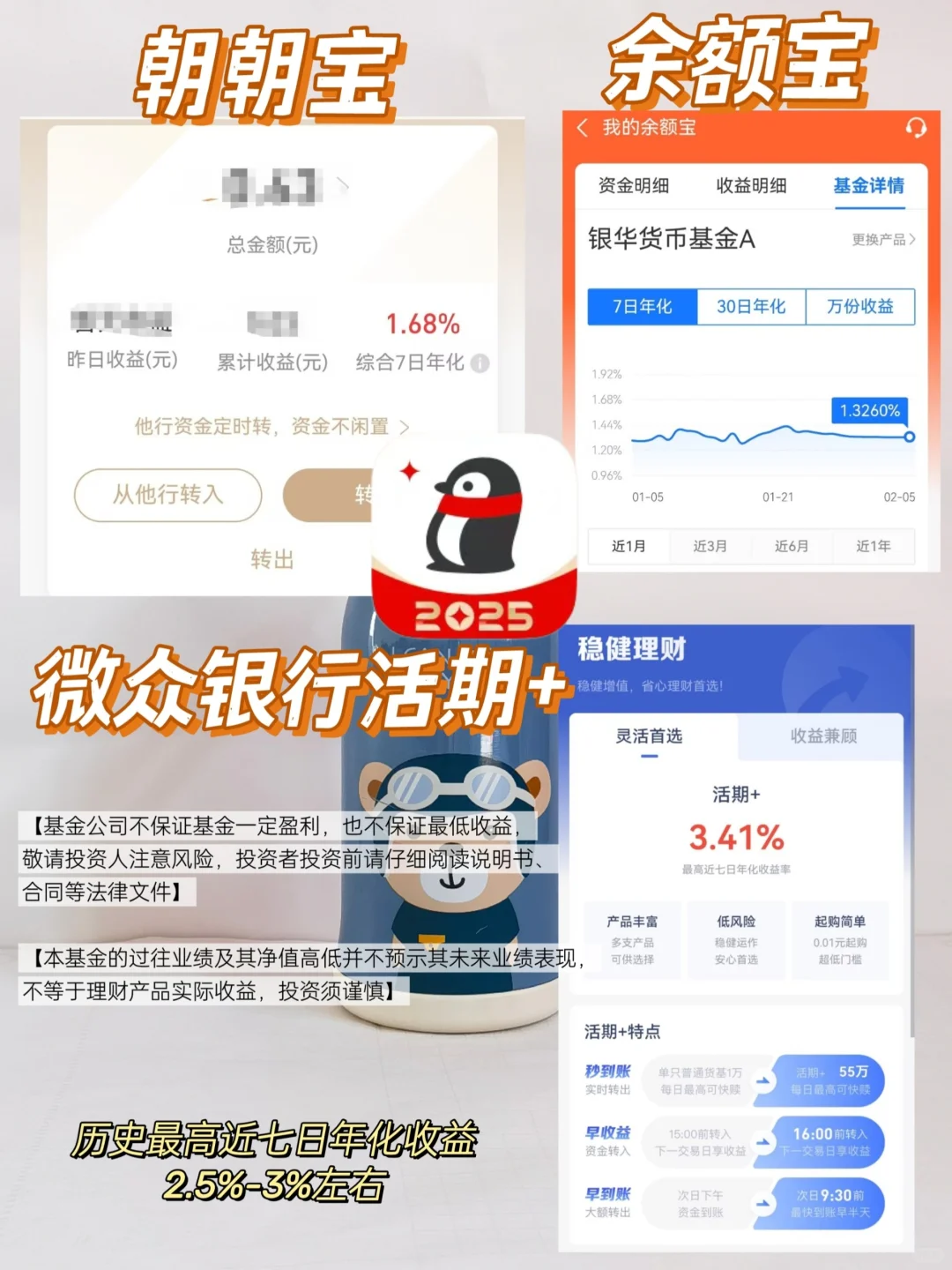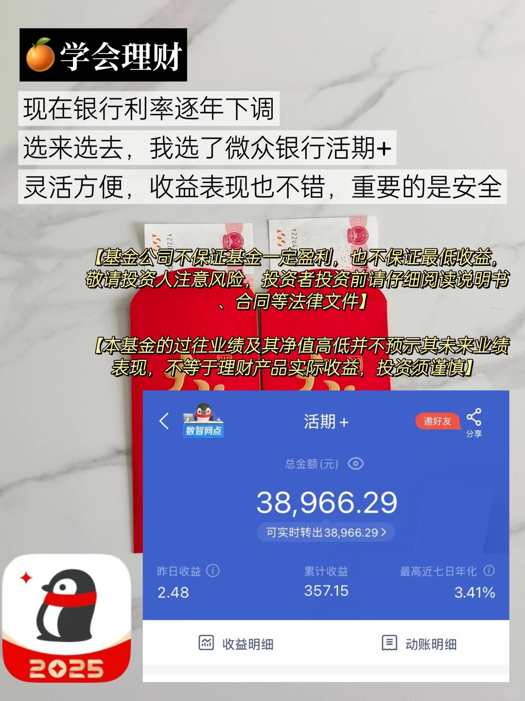 放微众活期+(2.5-3.0%)一年收益约250-280
