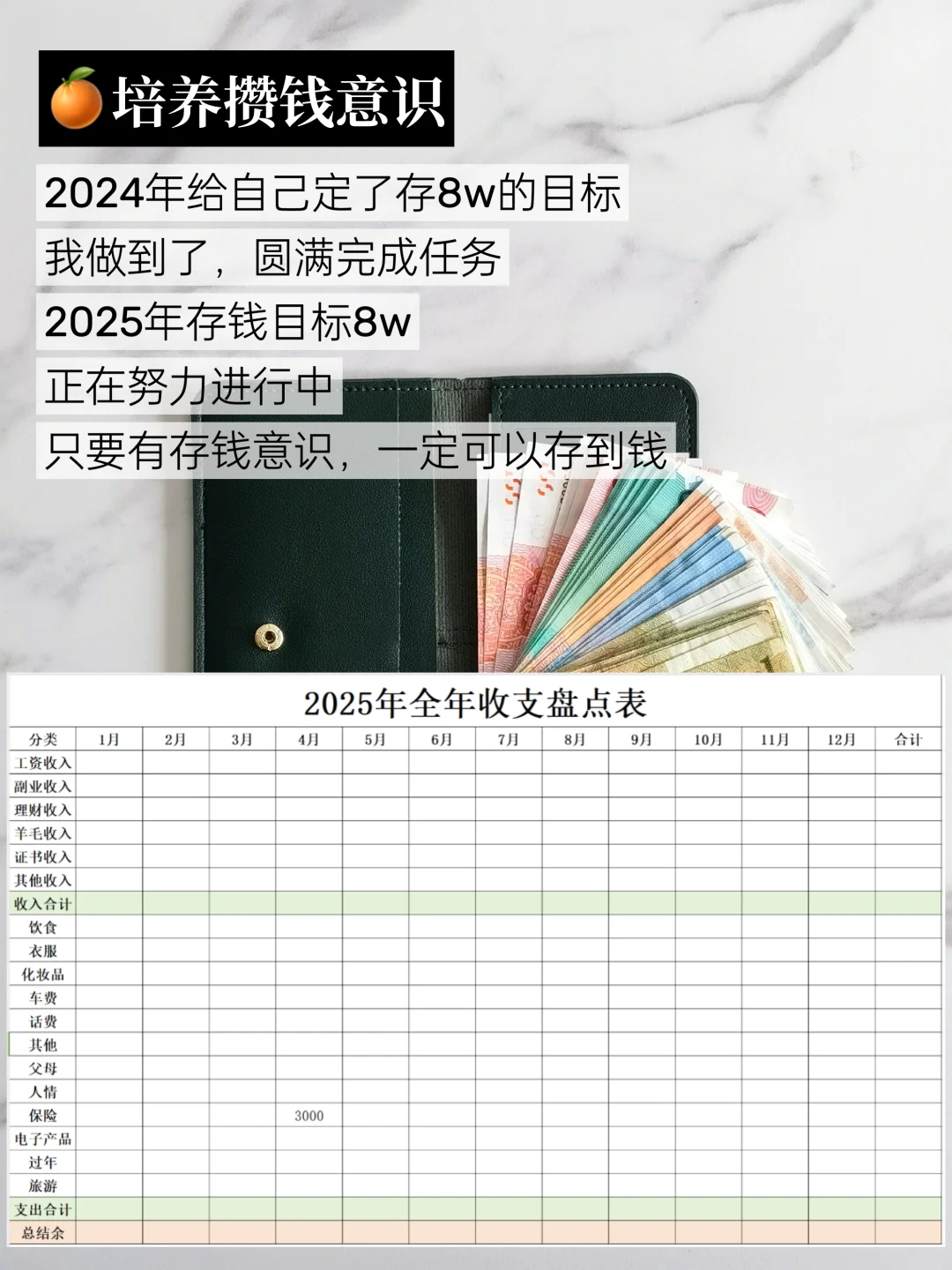 所以我制定了存钱计划,每个月固定存储,24年也完成了存钱目标(甚至超出目标),25年继续坚持。