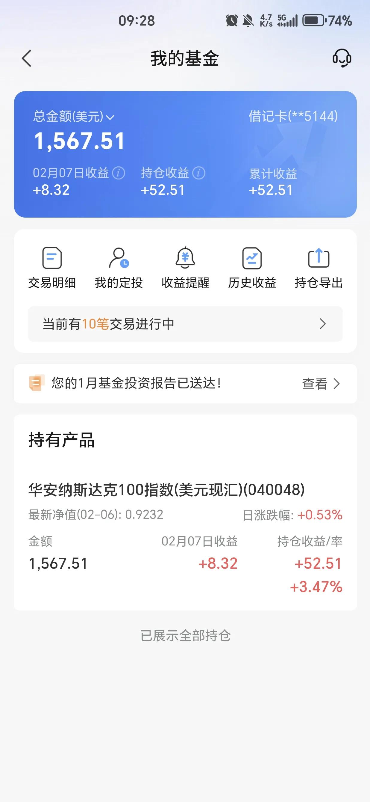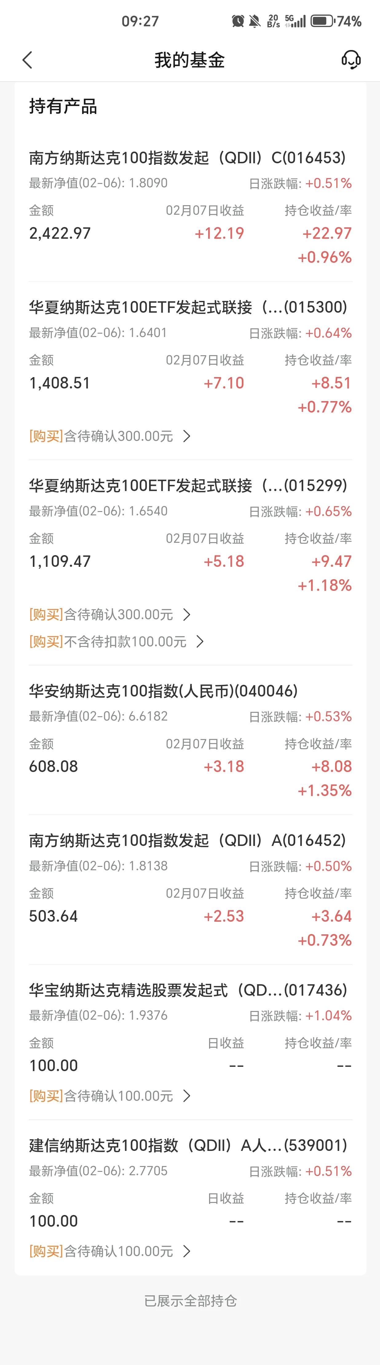 今日基金继续加仓中。 受上周五暴跌影响,持有的场内ETF基金今日普跌0.8%左右,跌幅低于预期-1.3%。 今日场外ETF反应的上周四晚走势,收益整体上涨,目前指数还没有新高,按计划场内场外基金继续加仓。 通过时间改变一切方向。