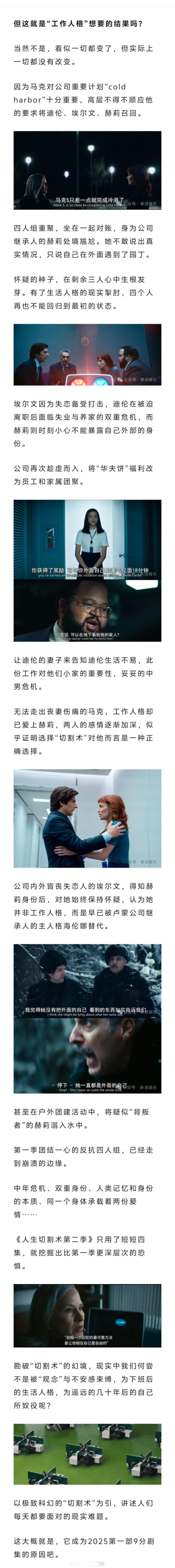 2025年第一部9分剧 人生切割术第二季打工人还敢看吗 《人生切割术第二季》回归,第一季剧集在形而上层面讨论人对自我的奴役,第二季剧集重归现实,将大公司腐化、分化、压榨已经觉醒打工人的手段,全都搬到台面上。↓
