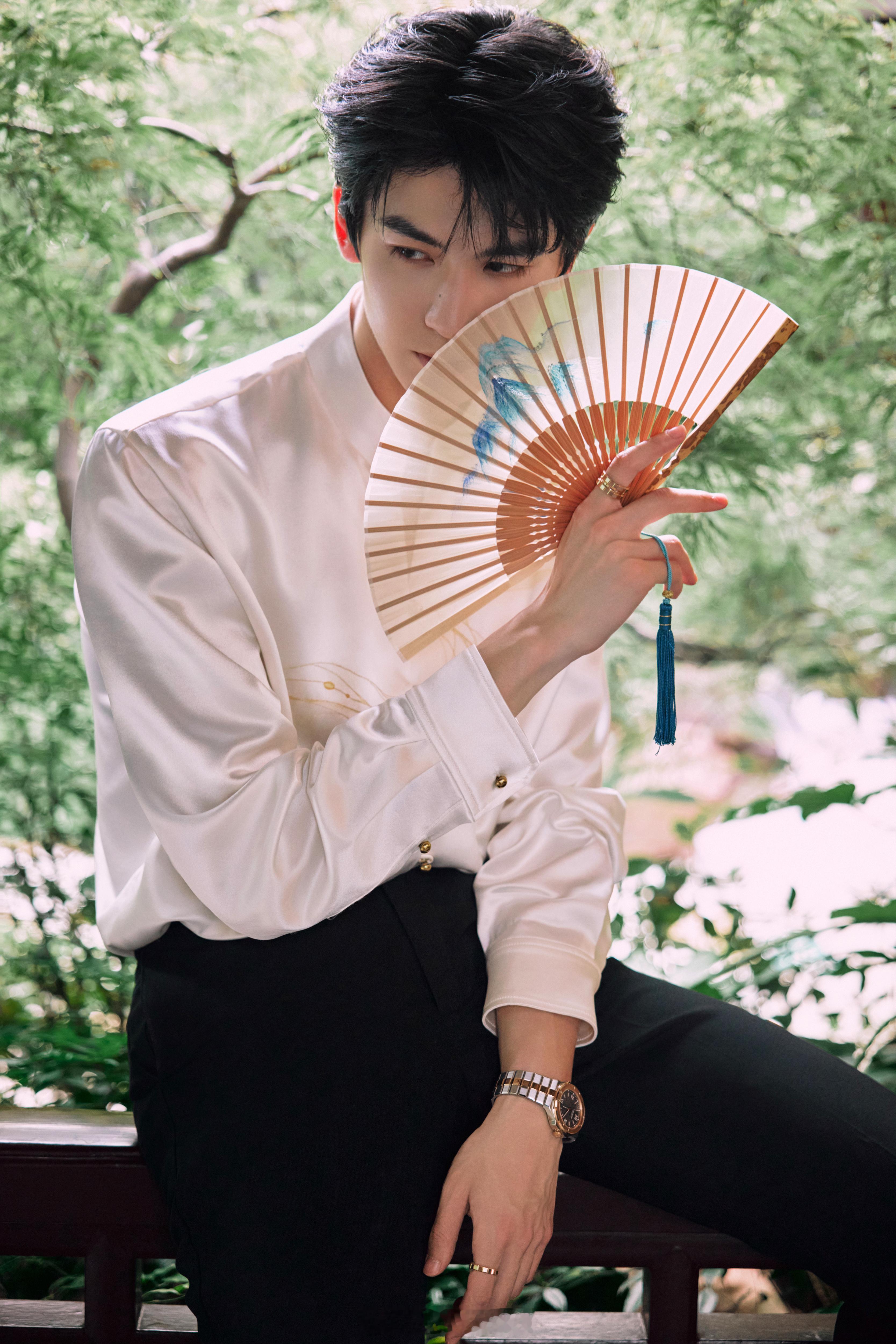 张凌赫国风包帅的 短片来袭,黑衣深V漫步云雾,朱红上衣雅韵尽显,白色套装温润如