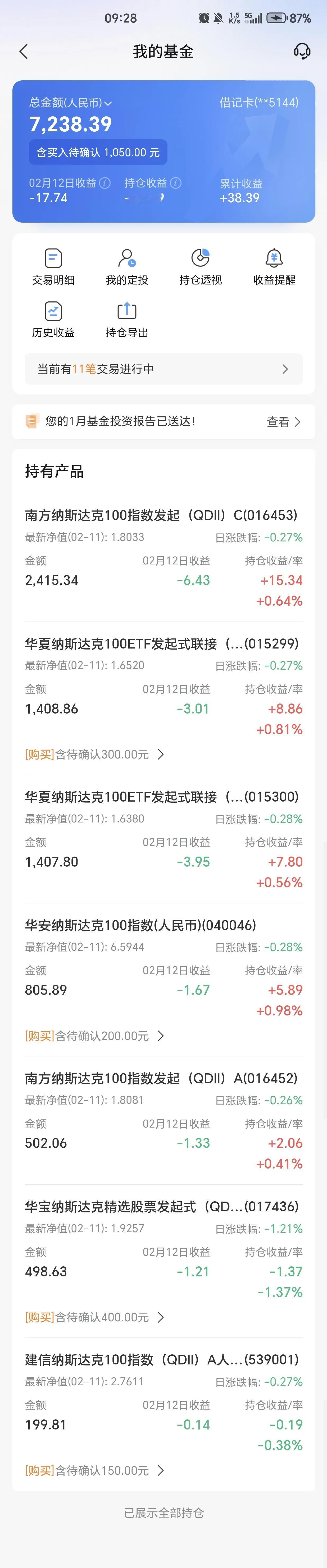 对于投资者需要一个明确的投资就是不要投资个股。这是我经历大A和美股重要的认识。A股从最早的100家上市公司发展到目前近5500家,退市的还不算,没有永远的公司。而美股从诞生至今退市达到70%,至今只有通用电气一家还在。特斯拉从最高点下跌超1/3,个股波动最终会让很多人投资付之东流。 分享股市的苦乐 美股昨夜公布1月CPI经济数据,3.0%涨幅使的降息预期下降,股指📊大幅低开,但今日看微涨0.12%,成熟市场有一定道理,另外基金可操作性回避了恐慌杀跌和高频交易。大幅降低了投资的门槛和时间投入。 场外基金微跌不到0.3%,场内基金微涨。 场外基金继续加仓,等待新高!!