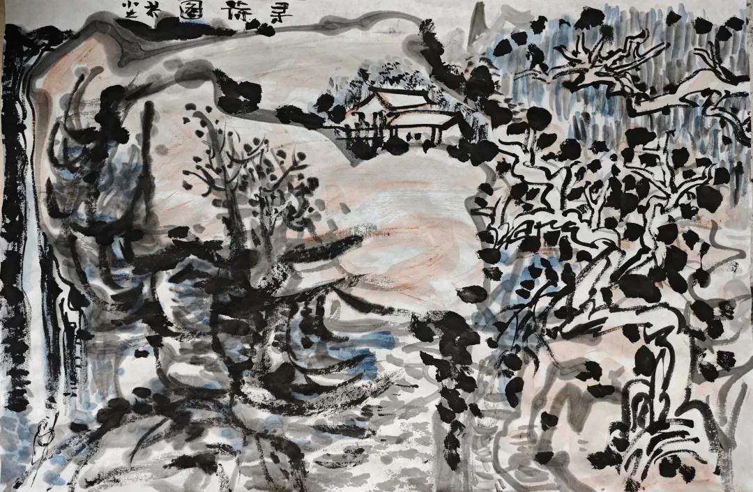 更以笔墨载情绪:焦墨裹着撞入密林的清凉,淡彩浸着撞见山房的松弛,每一笔都是情绪落纸——不用“像”,只凭墨色的呼吸感,让纸上长出带着烟火气的“可居可游”之境。