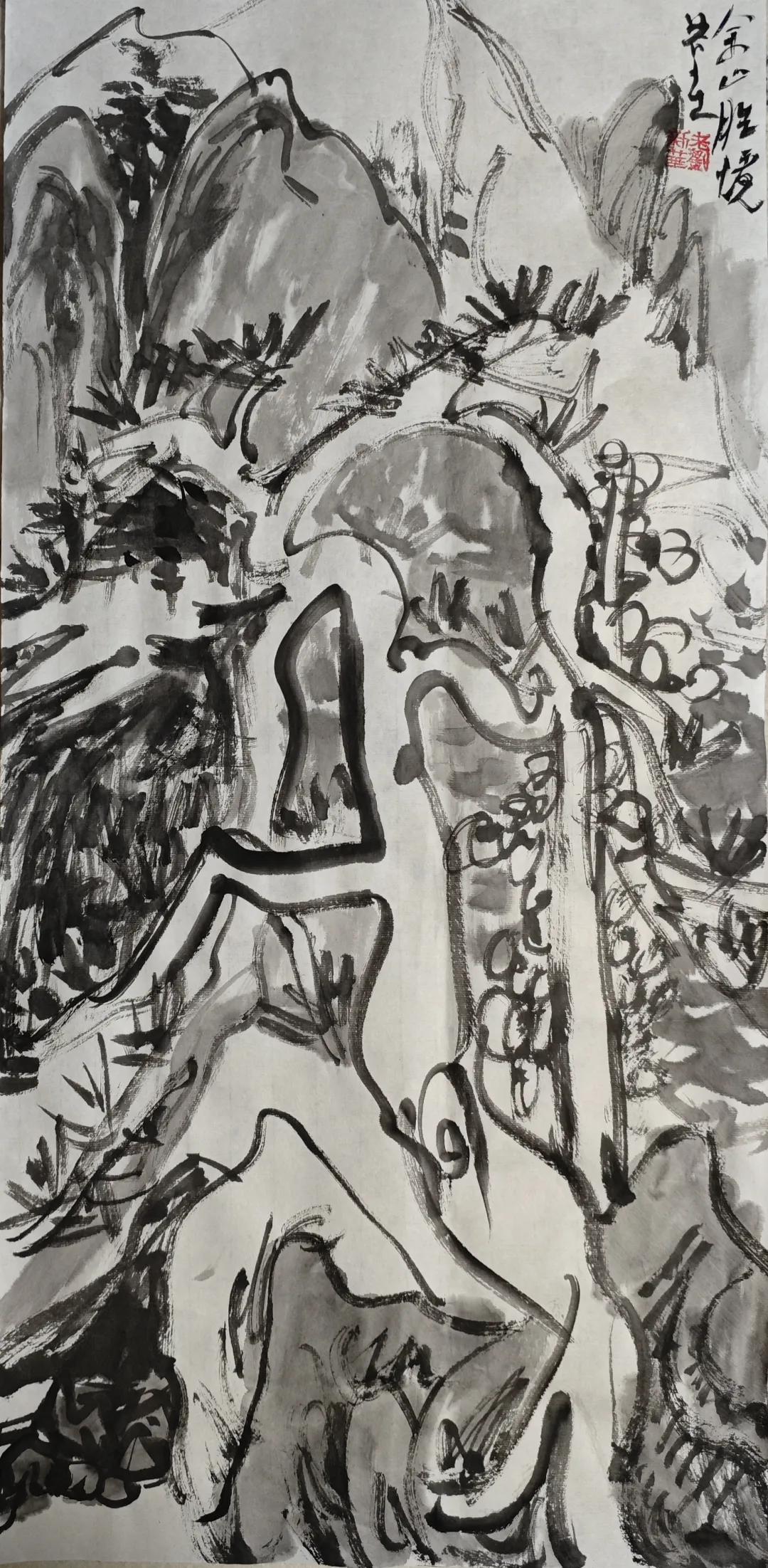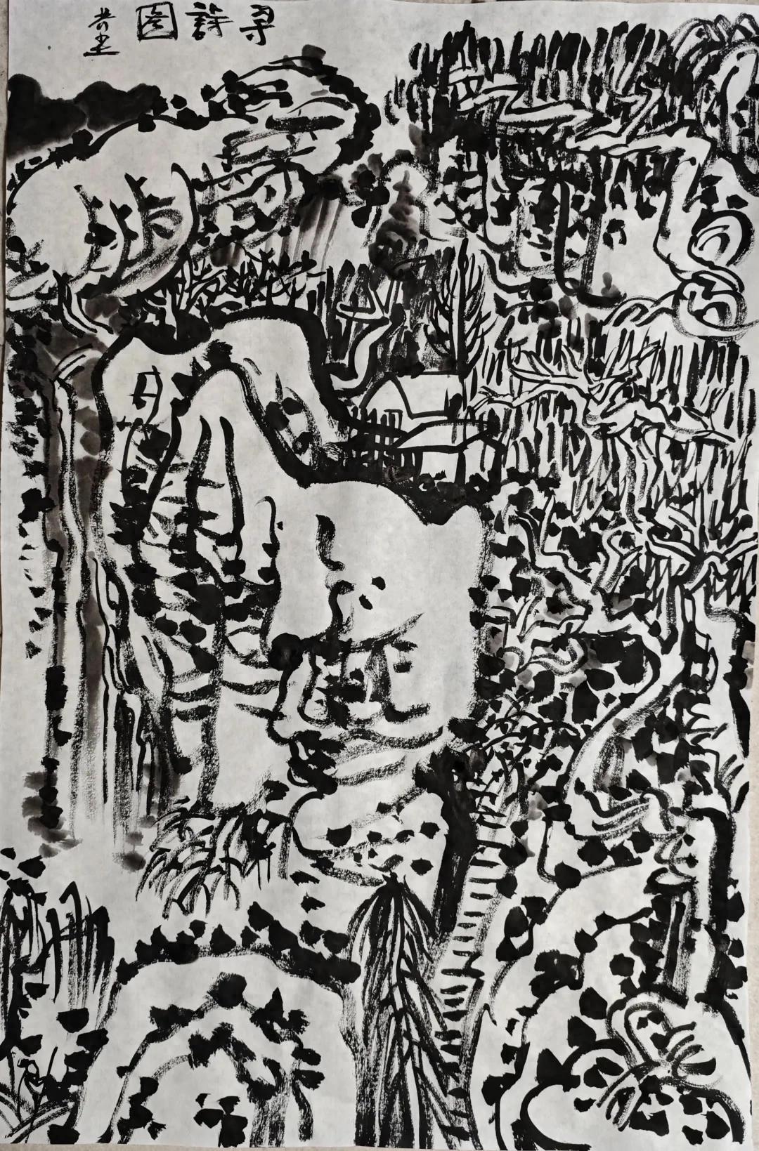 以点线面转译林泉魂,用笔墨承载真情绪。不泥古,不摹形,只将撞入山林的清凉、撞见山房的松弛,揉进浓淡墨色里。一笔一息,皆是纸上林泉的“可居可游”之境。