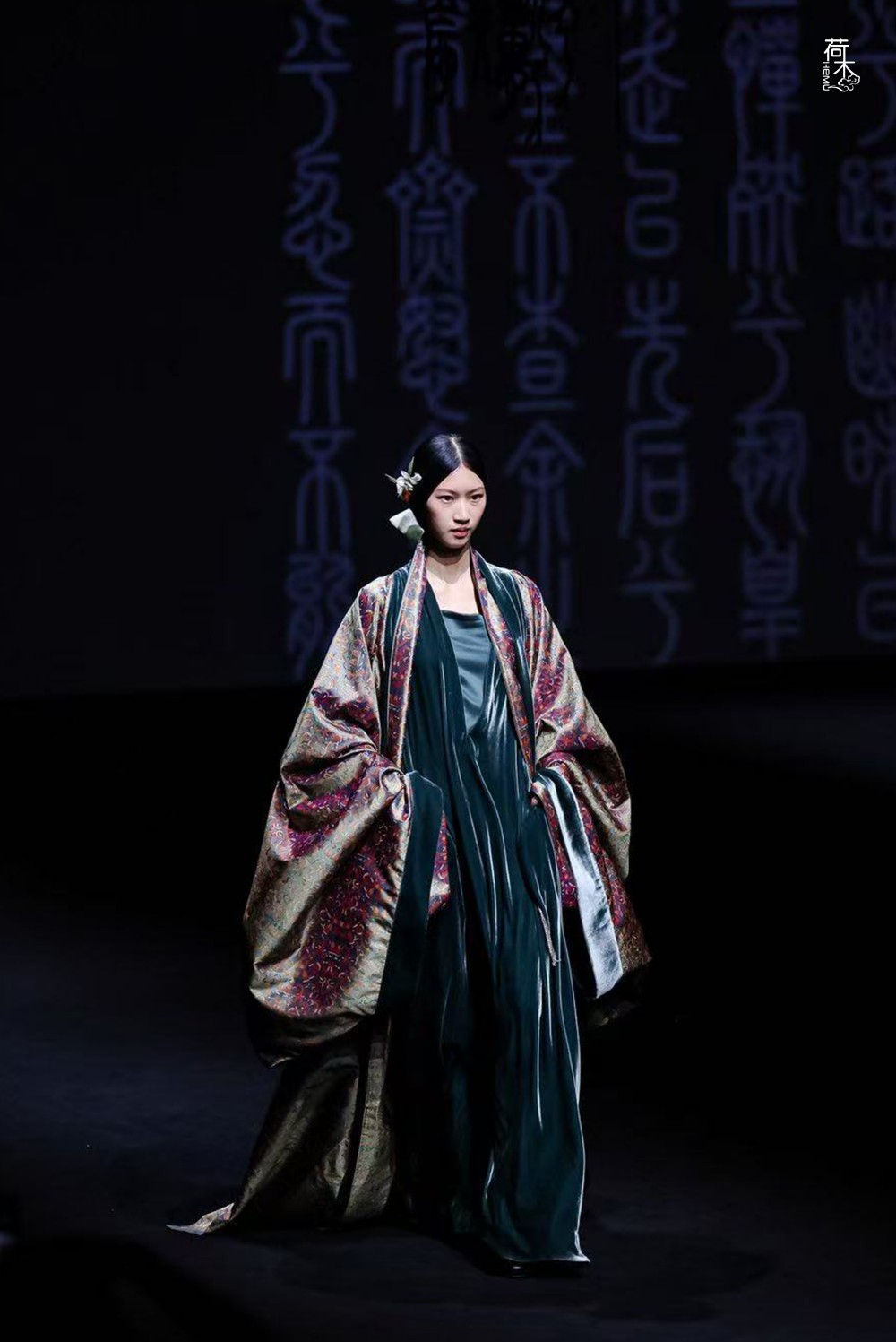 荷木 HEMU 本季的创作以《离骚》当代解读者的身份,将字里行间流淌的高雅与浪漫、孤独与傲岸、 悲壮与赤诚以当代服装来演绎。服装从来不是一个具象的表达,它是一个人一个时代精神世界的呈现,中国文化也从来不是简单的东方符号,而是一种精神气质与历久弥新的力量。