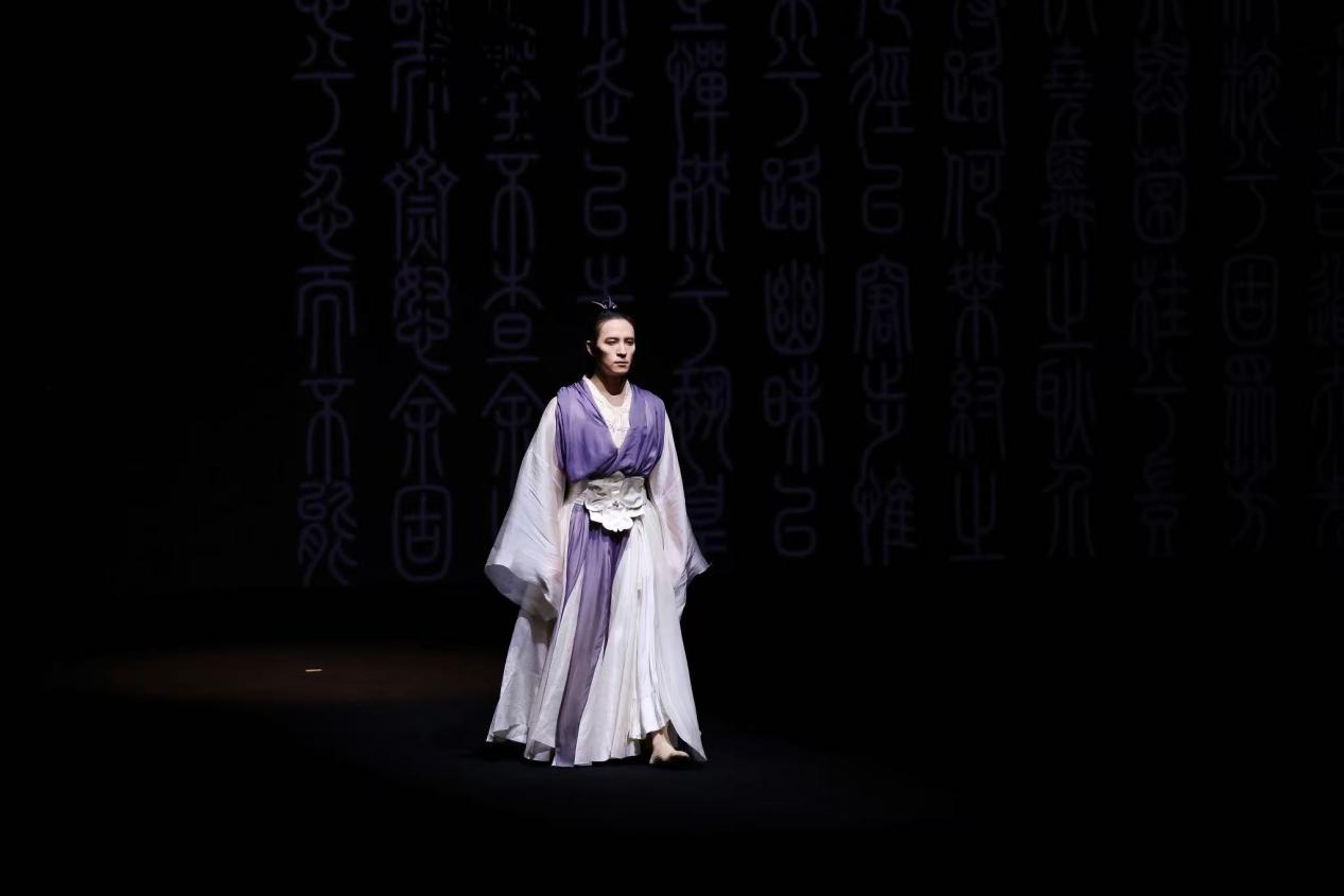 两千多年前的屈原,在楚地泽畔以笔墨抒发胸臆,两千多年后的今天,我们以服装语言重述《离骚》,秀场上镌刻的篆体书写着屈子不屈的精神,模特身上盛开的一朵朵兰花, 隐喻着“香草美人”的高贵气质。真正的东方美学,应当扎根于传统文化的土壤,真正的经典能让我们在时代浪潮的裹挟中,找到解读精神世界的入口。