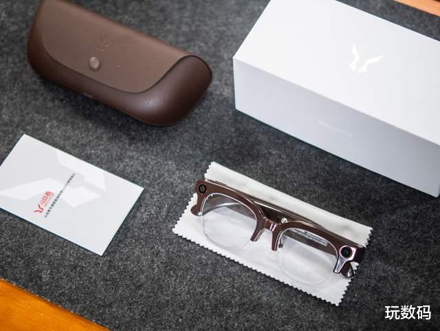 它的包装采用了通体白色的设计,看上去非常简约。配件方面也是做到了上手直接用,除了眼镜本体外,还有皮质充电仓以及一张眼镜布。