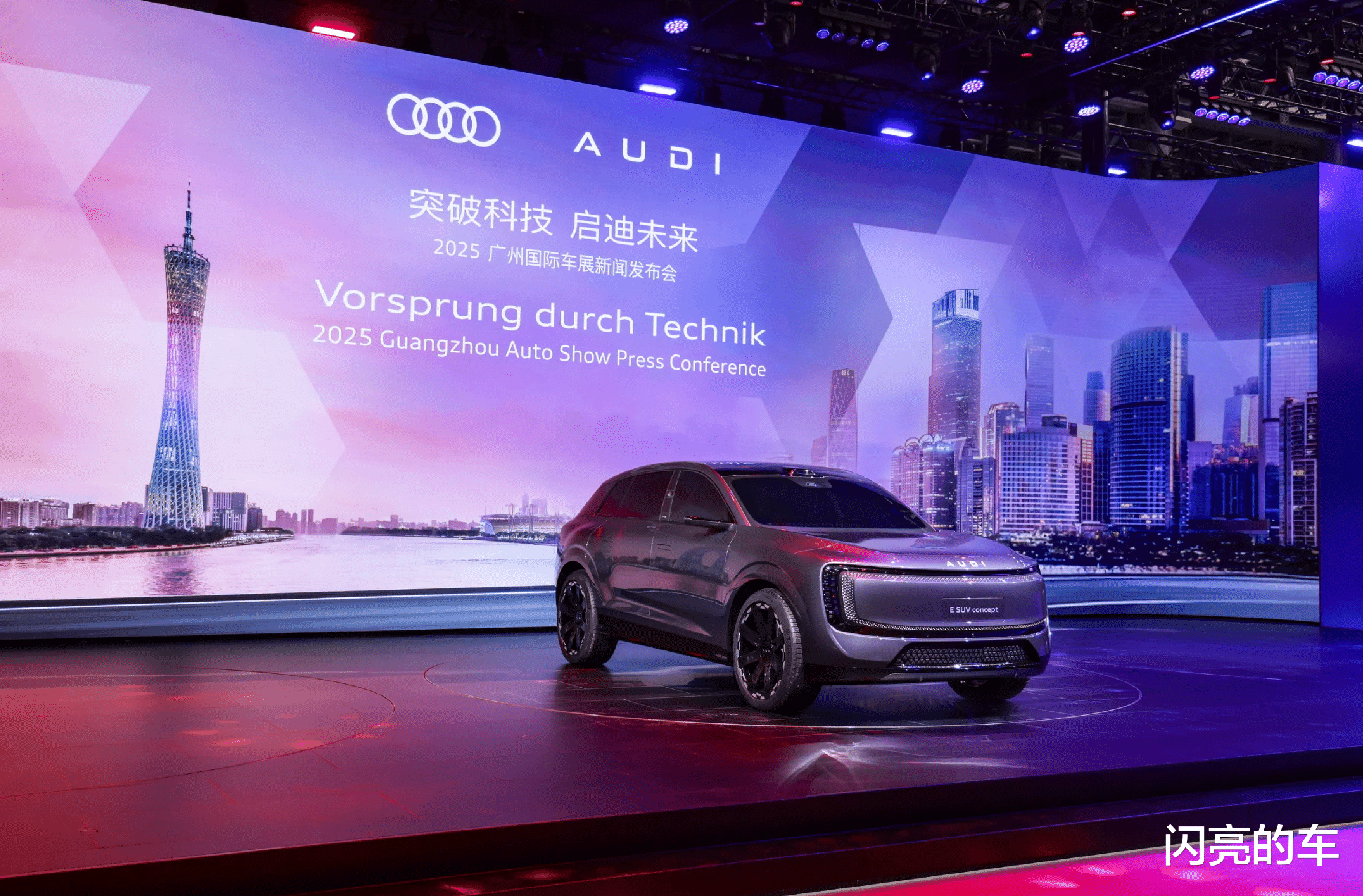 AUDI是奥迪联合上汽在中国推出的专属新能源子品牌,今年9月份推出首款车型E5 Sportback后大受市场欢迎,在刚刚开幕的广州车展上,奥迪再次联手上汽,准备推出AUDI的第二款量产车型,不过,这次在广州车展上先是以概念车E SUV的形式展现,预计将会在2026年正式量产并登陆市场。