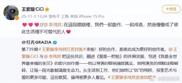01 不一样的官宣宣言说起明星官宣结婚,大家可能见惯了各种浪漫告白或甜蜜合照。但王紫璇和李鸿其的官宣方式,却让人感受到一种特别的踏实感。