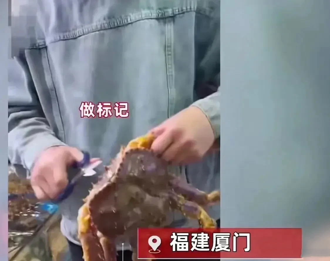 福建厦门一名男子在海鲜市场购买活帝王蟹后,特意在蟹壳上剪角做记号,送到餐馆加工。上菜后却发现记号消失,帝王蟹疑被调换。这起事件引发对餐饮行业诚信经营的广泛关注。
