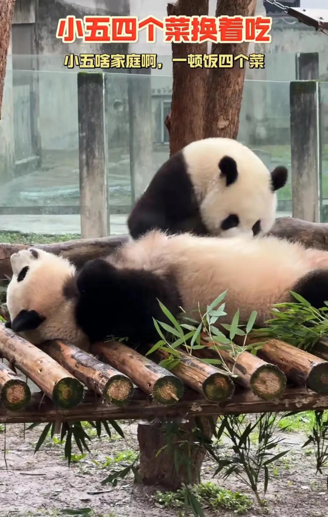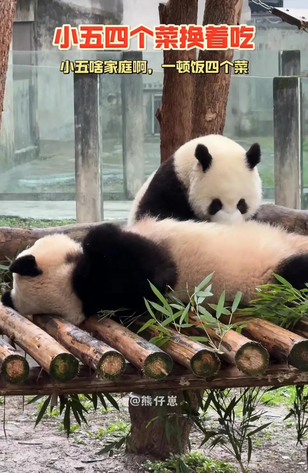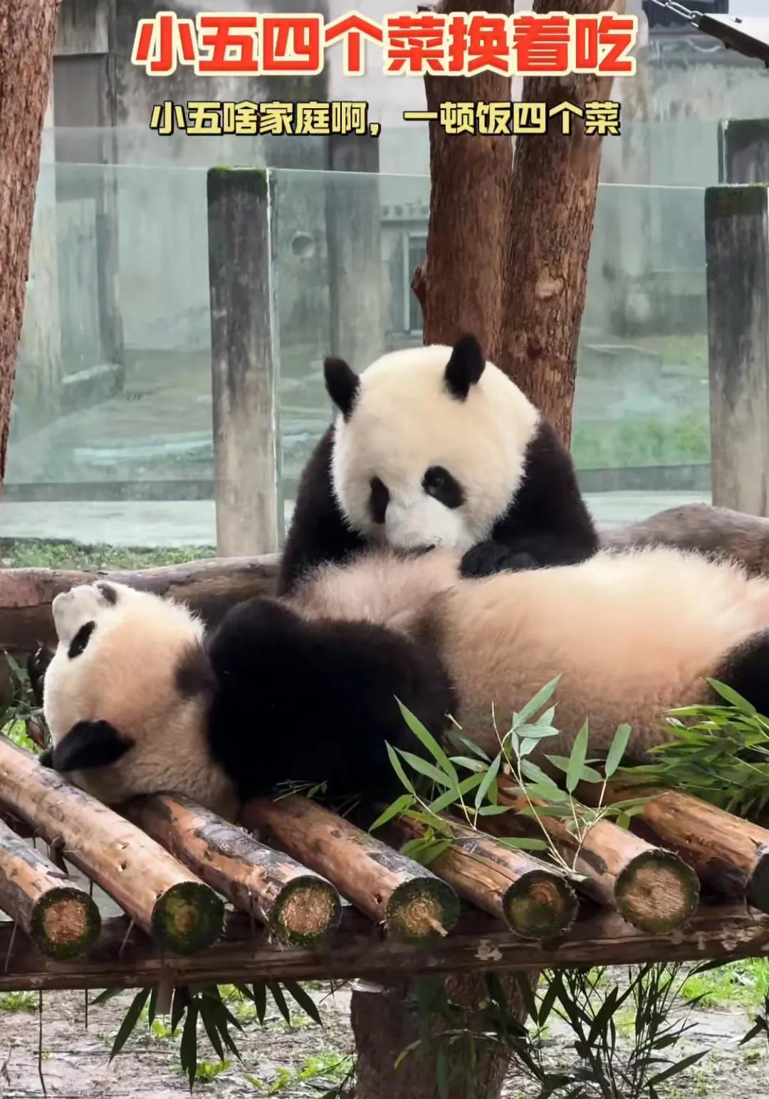 熊猫母子温馨时刻! 网友辣评:莽小五一顿饭四个菜,这是啥家庭啊? 哈哈,全网还是