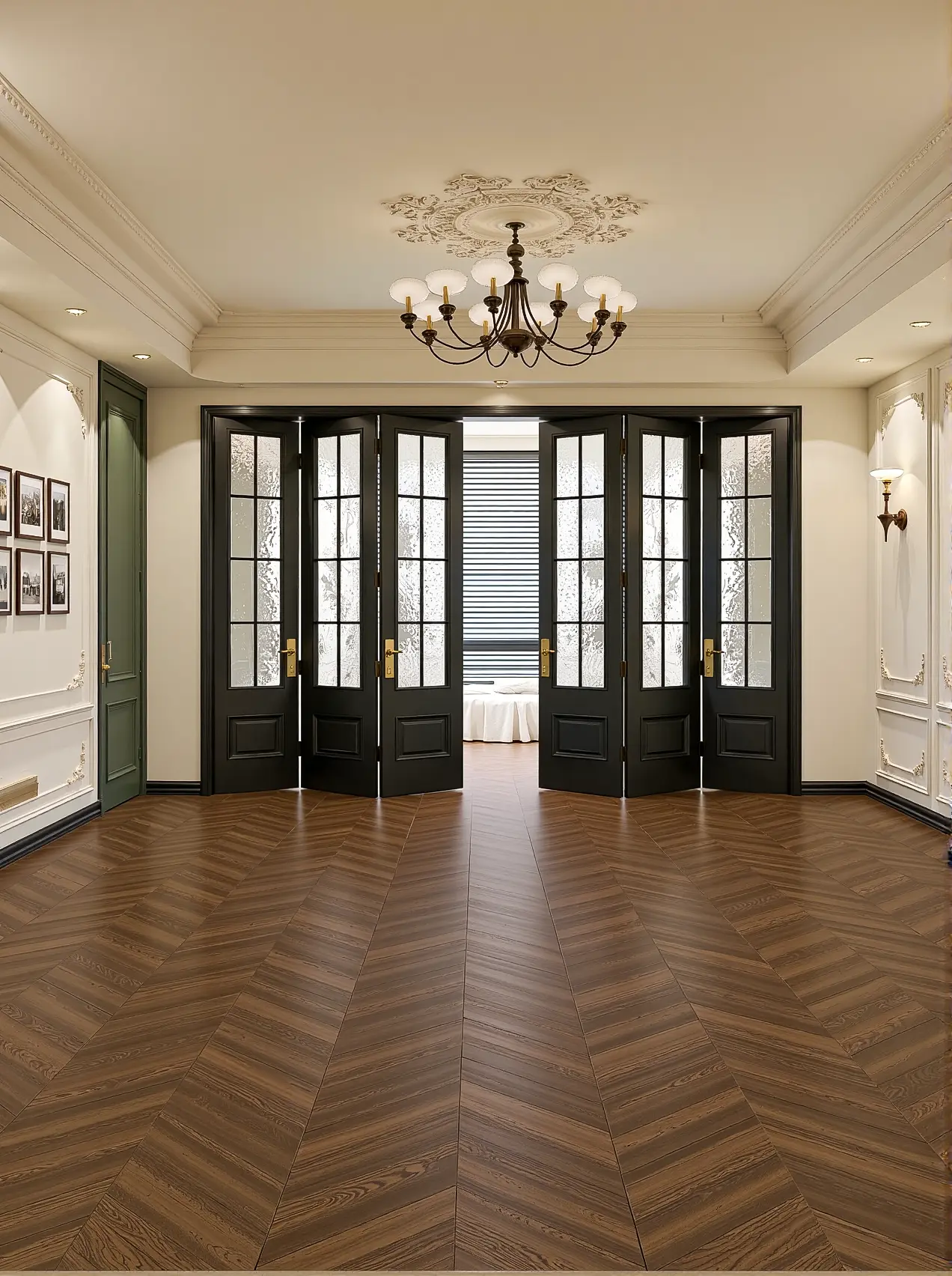 硬装结束的法式复古装修,当复古绿乳胶漆与哑光黑邂逅,雕花石膏线勾勒出复古氛围感。复古拱门、水晶吊灯在奶油色墙面投下斑驳光影,胡桃木深色木纹砖让家更加经久耐看~