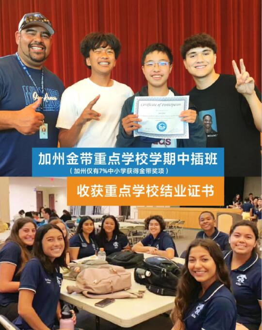 🏫加州杰出金带学校 金带学校是美国教育部颁布的独属于加州的荣誉,相当于国内的省重点中学。(在加州近6000所中小学中,只有7%的学校获得了金带的荣誉。)
