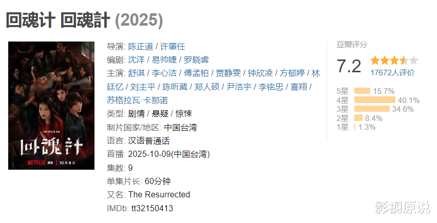 因为演员的阵容还算强大,题材也具有很强的吸引力,而且还是由奈飞出品,因而《回魂计》也是得到了国内很多观众的追捧,也有不少人都给出了很高的评价,评分达到了7.2分。