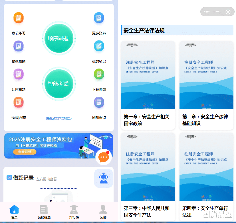 众多软件中,我最终选择了多数人推荐的微信 《安全工程师刷题》 小程序,也是最推荐的一款。其优势很突出:一是出题精准,模拟题与每年考试考点范围贴合度高,且知识点涉猎全面,对章节复习帮助极大;二是更新快,每年都会同步最新考纲,把新增考点汇入进去。此外,小程序无广告干扰,使用体验省心。