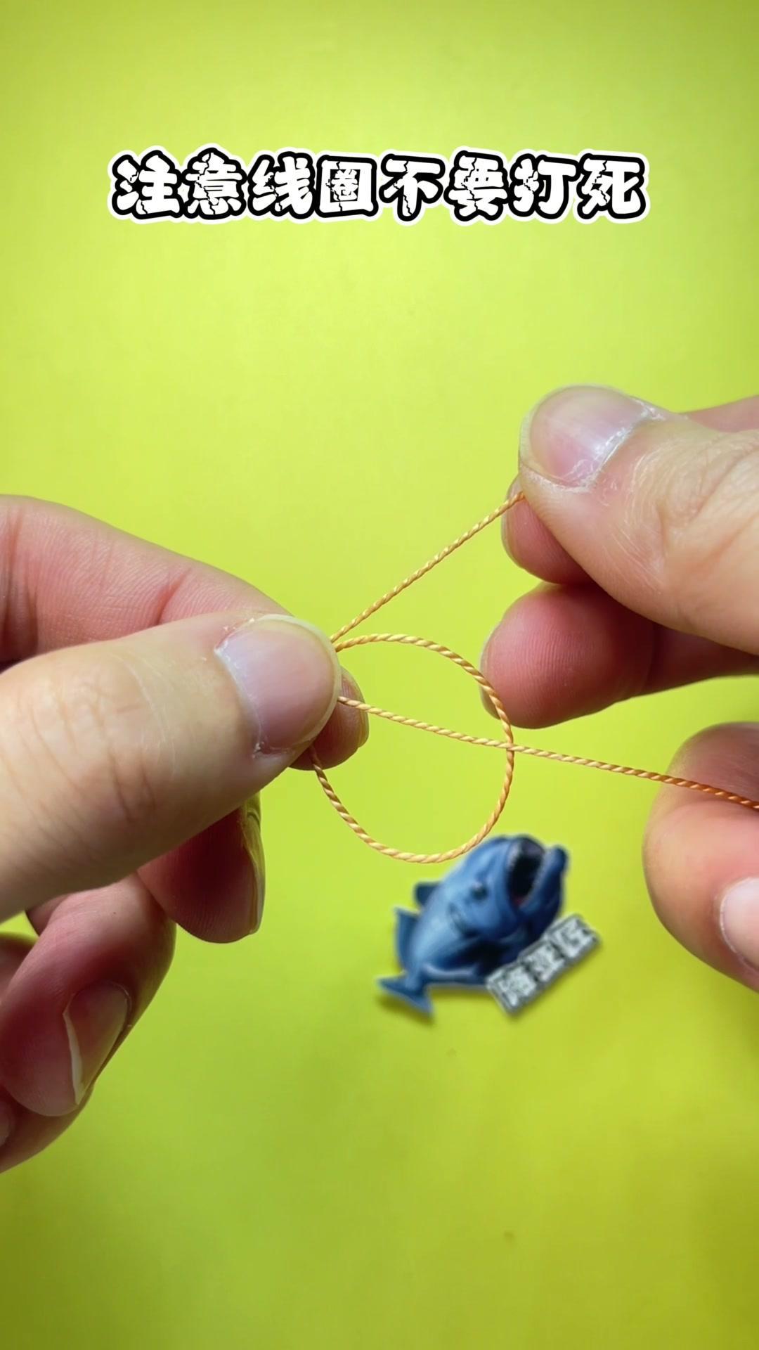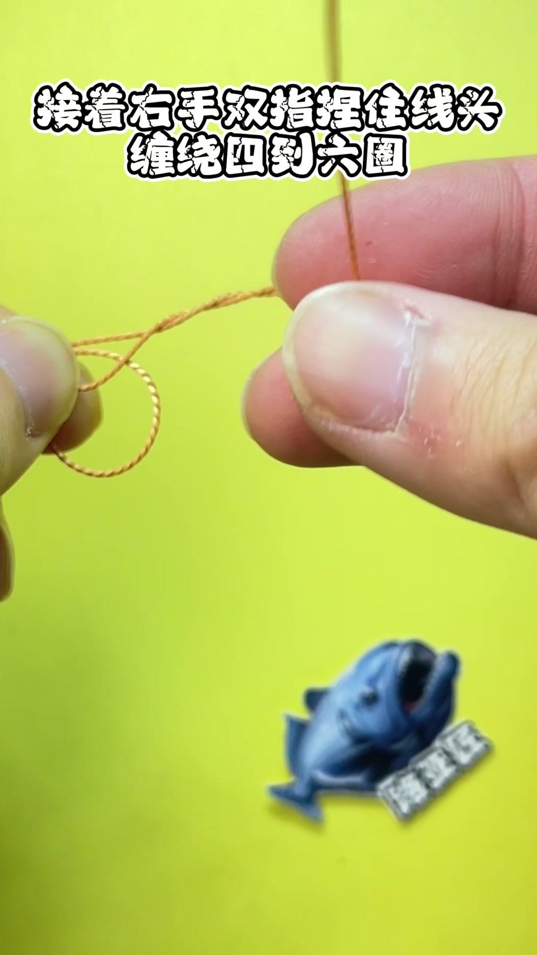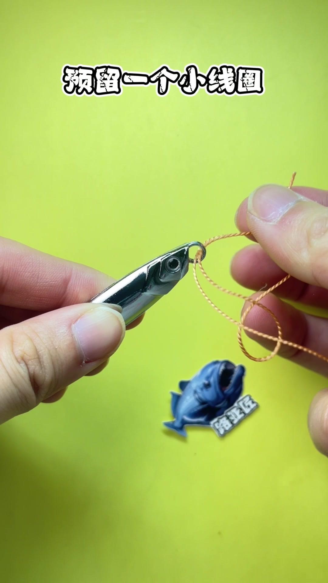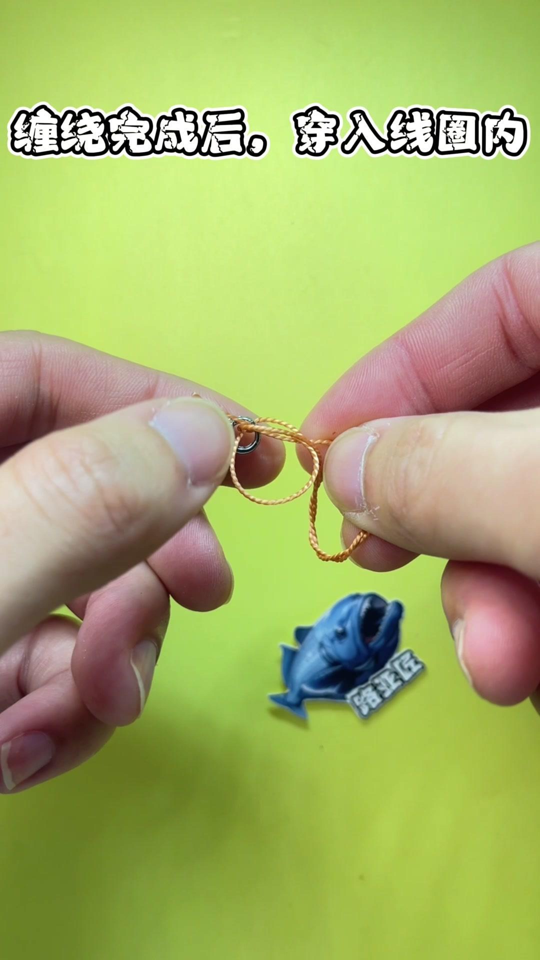 1️⃣将鱼线两次穿入铁板,预留一个小线圈,注意线圈不要打死。 2️⃣右手双指捏住线头,缠绕4-6圈。 3️⃣缠绕完成后穿入线圈内,慢慢收紧即可。 你学会了吗?