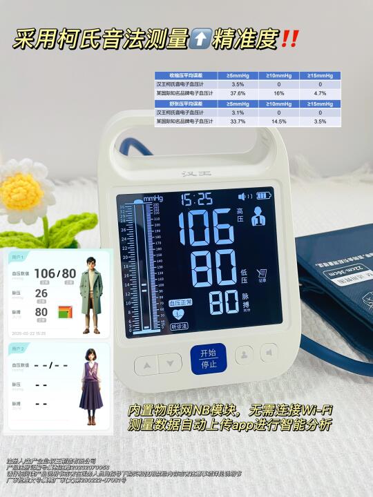 这款血压计采用和水银血压计一样准确的柯氏音法(听诊法),测量结果更准确‼️
