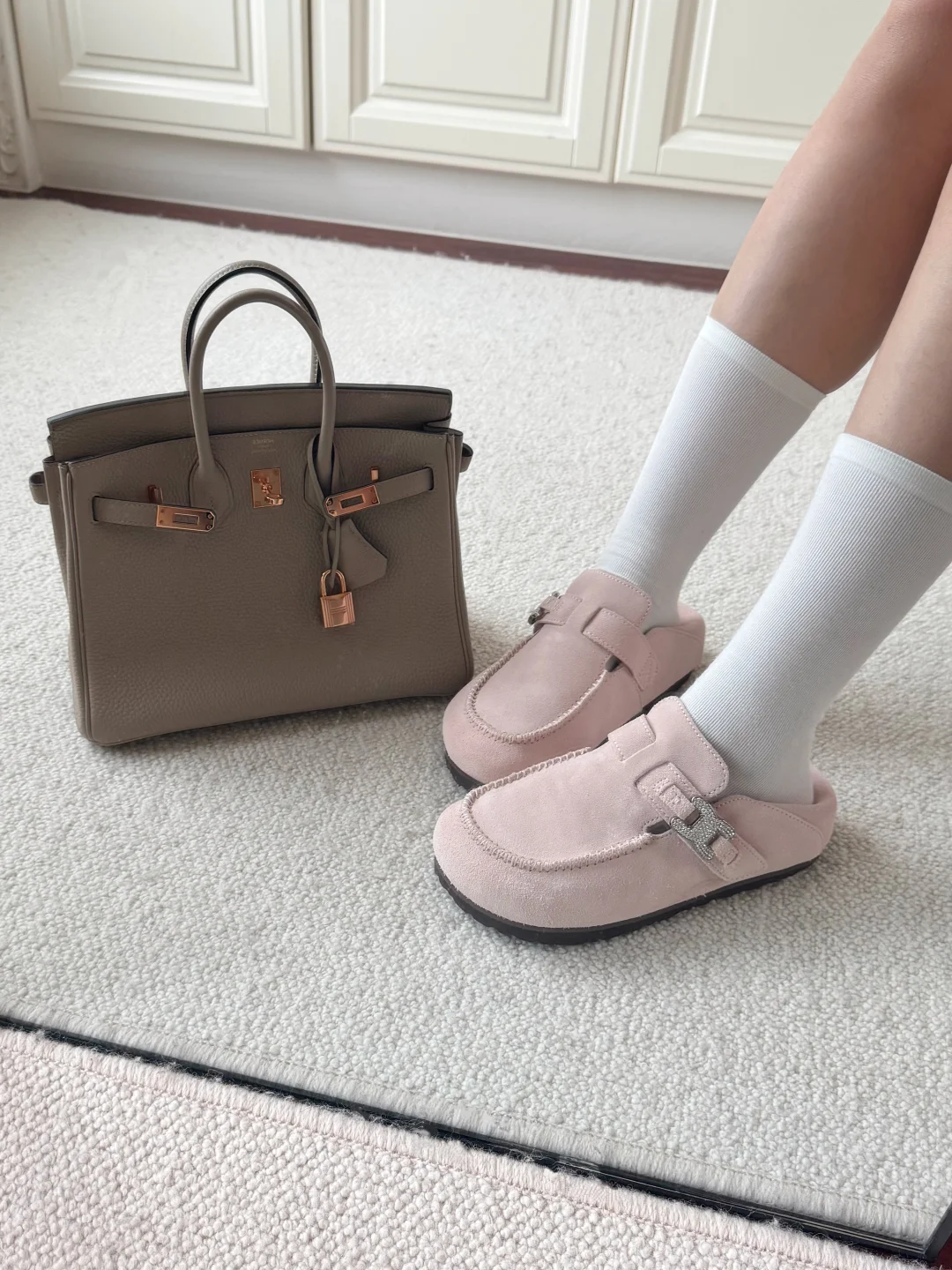 粉色是春夏的专属浪漫✨ 低饱和粉调 高级又百搭 我最喜欢它软木乳胶底的脚感🦶 暴走2w步轻松无压力 随便搭配牛仔或是干净的颜色 都是浪漫主义的感觉~ ·