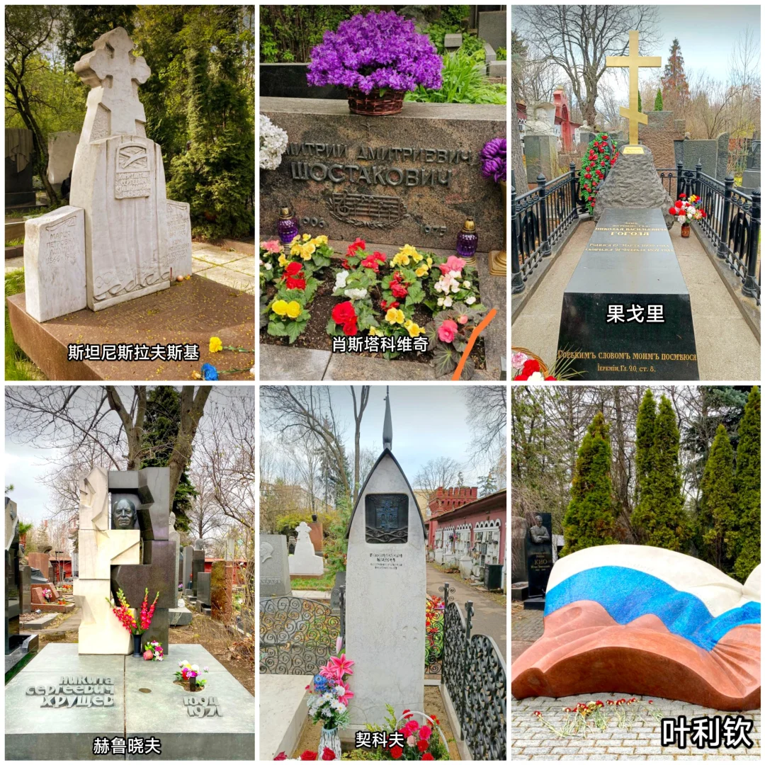 ⑤“新圣女公墓”在修道院的南墙之外,有约2万已故各界名人、科学家、国家英雄安葬于此,我们相对熟悉的包括:文学家契诃夫、果戈理,政治家赫鲁晓夫、叶利钦,音乐家普罗科菲耶夫、肖斯塔科维奇,戏剧家斯坦尼斯拉夫斯基等等。