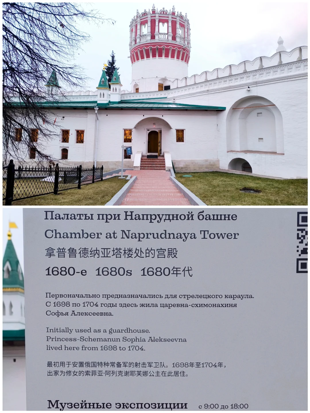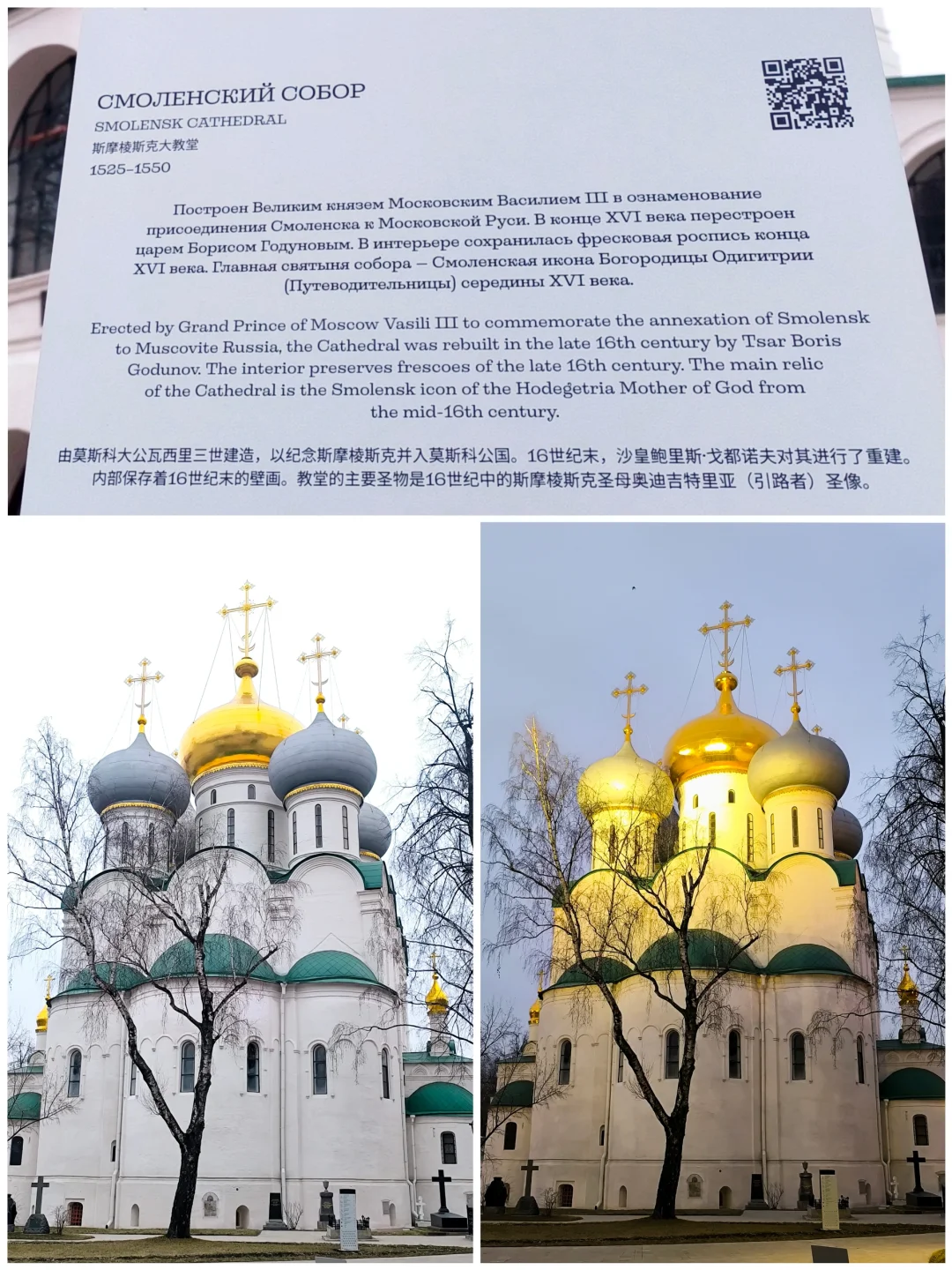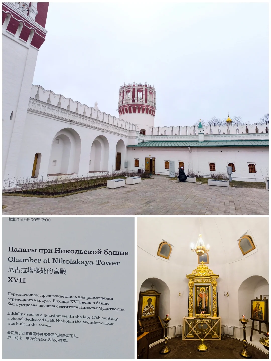 ④修道院有多重建筑,宫殿大小教堂好几个,最重要的斯摩棱斯克大教堂内饰有16世纪精美壁画,但暂时不对外开放。入院免费,教堂免费,宫殿博物馆收费。