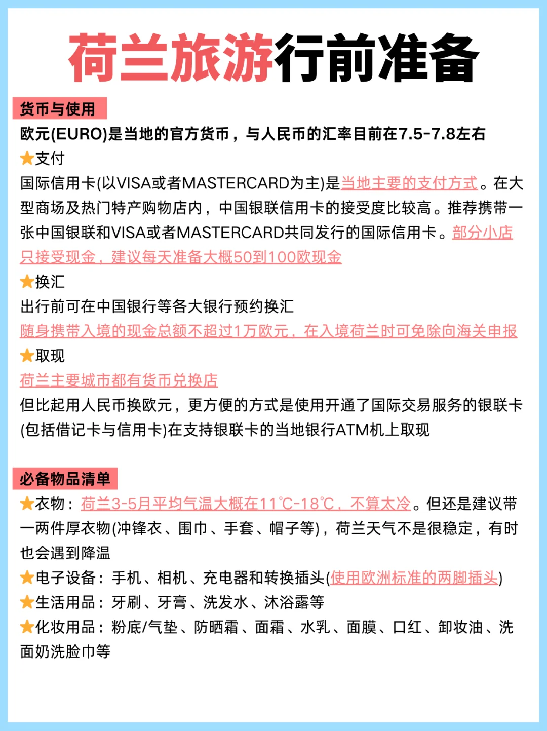 💡网上的攻略太杂太乱,今天整理了一份实用的荷兰旅行指南,涵盖时间、货币、行前准备和必去景点✌️