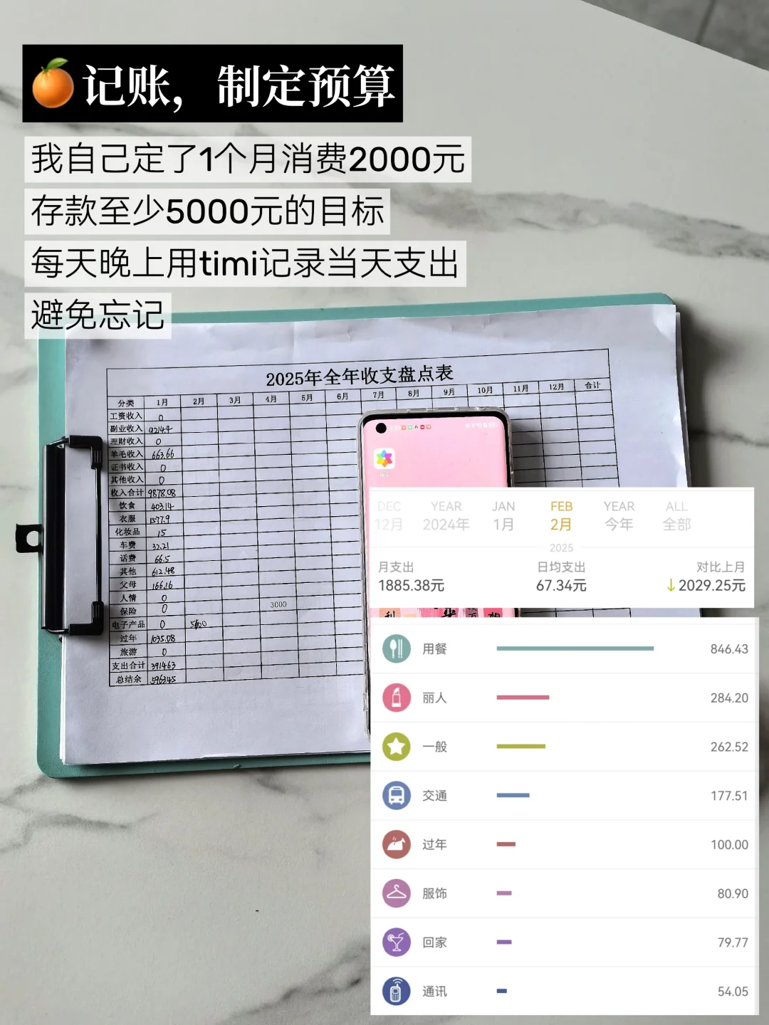 所以给我自己定了1个月消费2000元,存款至少5000元的目标。