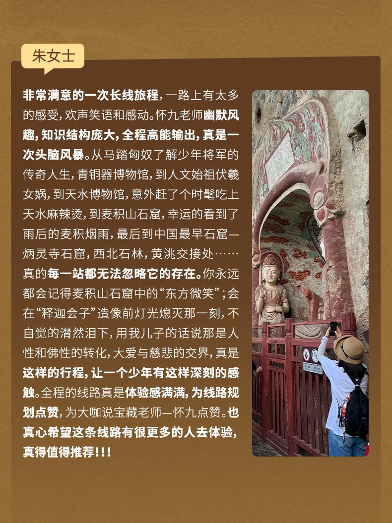👉“怀九老师不仅是老师,更像朋友。一路给我们串联了历史和地理人文的关系,亲切又幽默而感性,他的感性都是自然而然的流淌,都是因为热爱而迸发出来的真情实感”