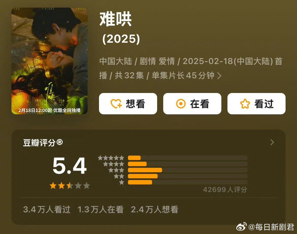 大奉5.4分,难哄也5.4分,怎么像是针对平台钦点的王牌大剧的一款定制套餐,这两部感觉都还挺好看啊[doge]