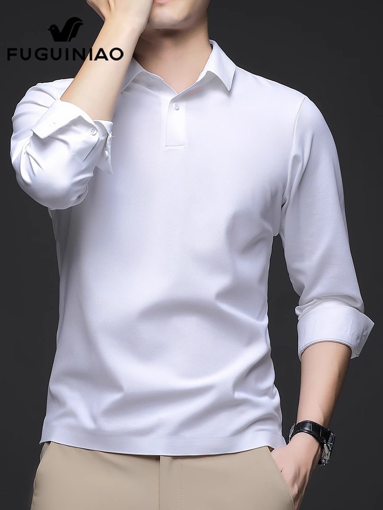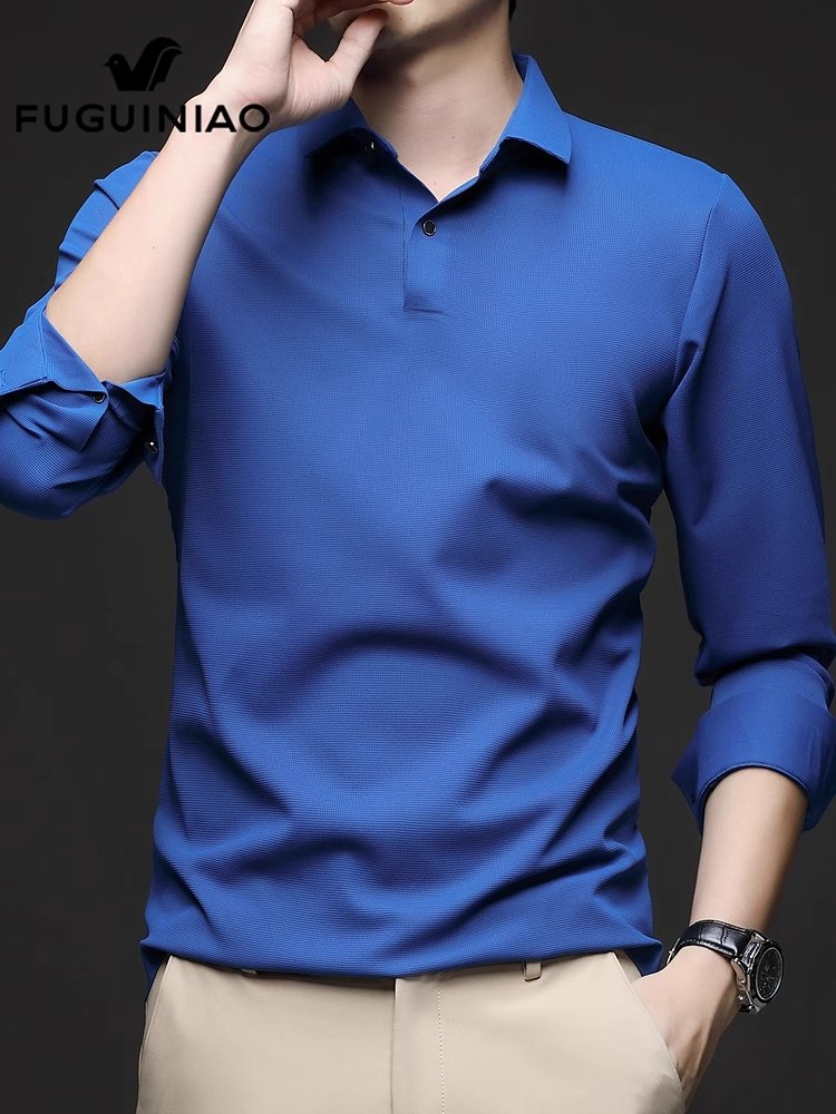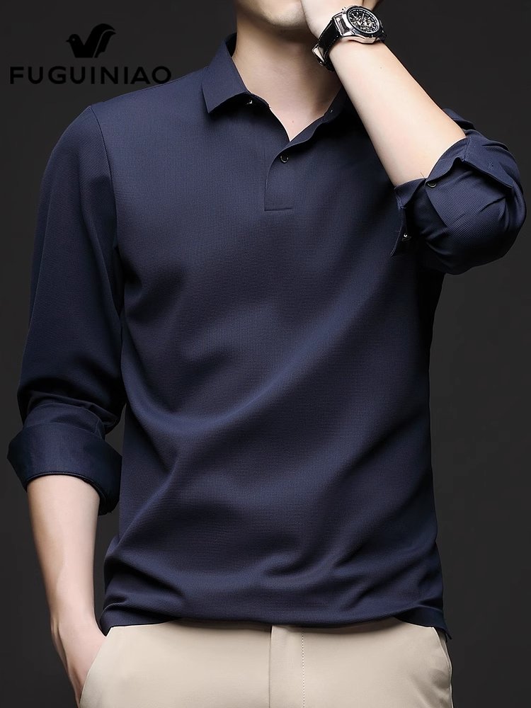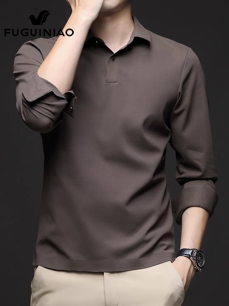 富贵鸟男士长袖t恤春季新款翻领打底衫休闲商务Polo衫男装