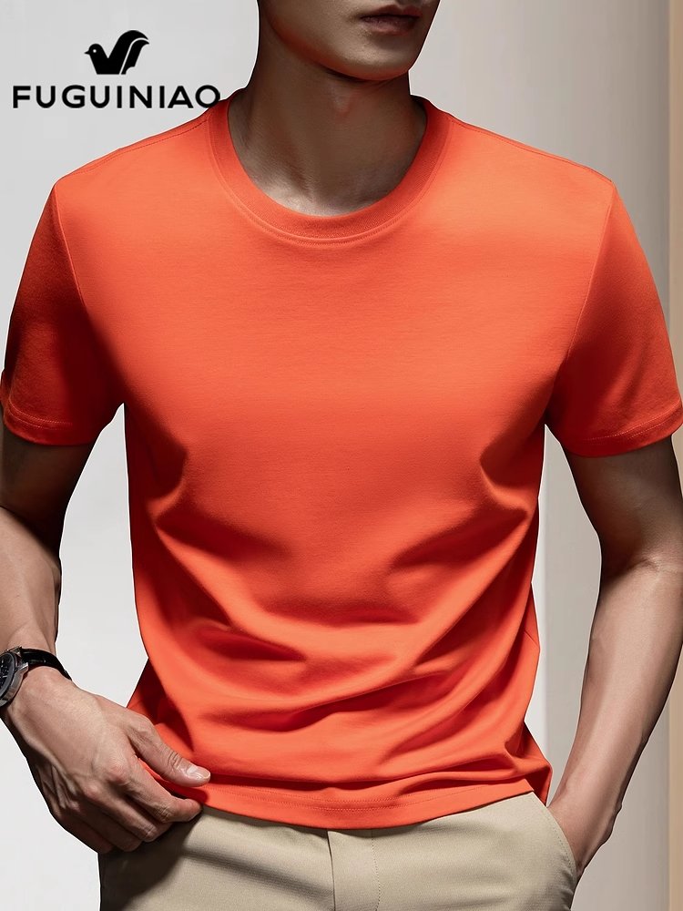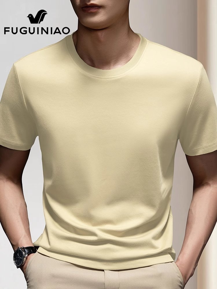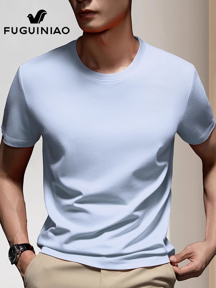 富贵鸟纯棉t恤男士短袖上衣服夏季新薄款休闲白色体恤衫男
