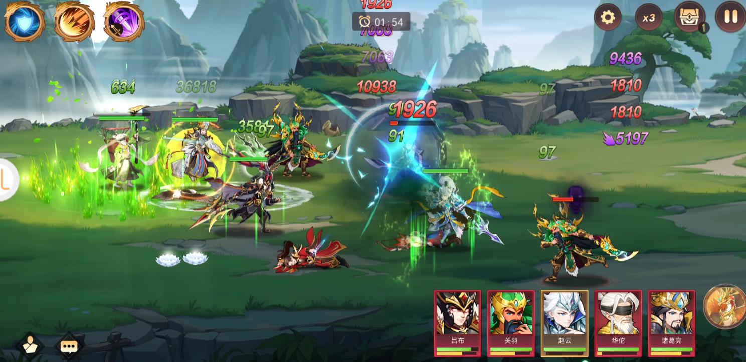 《掌中三国》战斗属于即时战斗,可以微操控怒气技能的释放,各武将自动锁敌,战斗中没有技能释放过场动画,画面流畅技能绚丽一气呵成。不管怎么说,即时战斗的视听体验还是要好过你一刀我一枪的回合制。