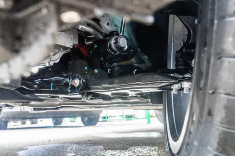 在影响驾驶质感和安全的基础硬件上,零跑C16也显得很有诚意。底盘方面,它采用了前麦弗逊、后五连杆式独立悬架。值得注意的是,其后五连杆悬架采用了较为粗壮的材料,并非简单的“够用”设计。部分高配车型还配备了FSD可变阻尼减振器,可以根据路况实时调节悬架软硬,旨在提升舒适性和稳定性。