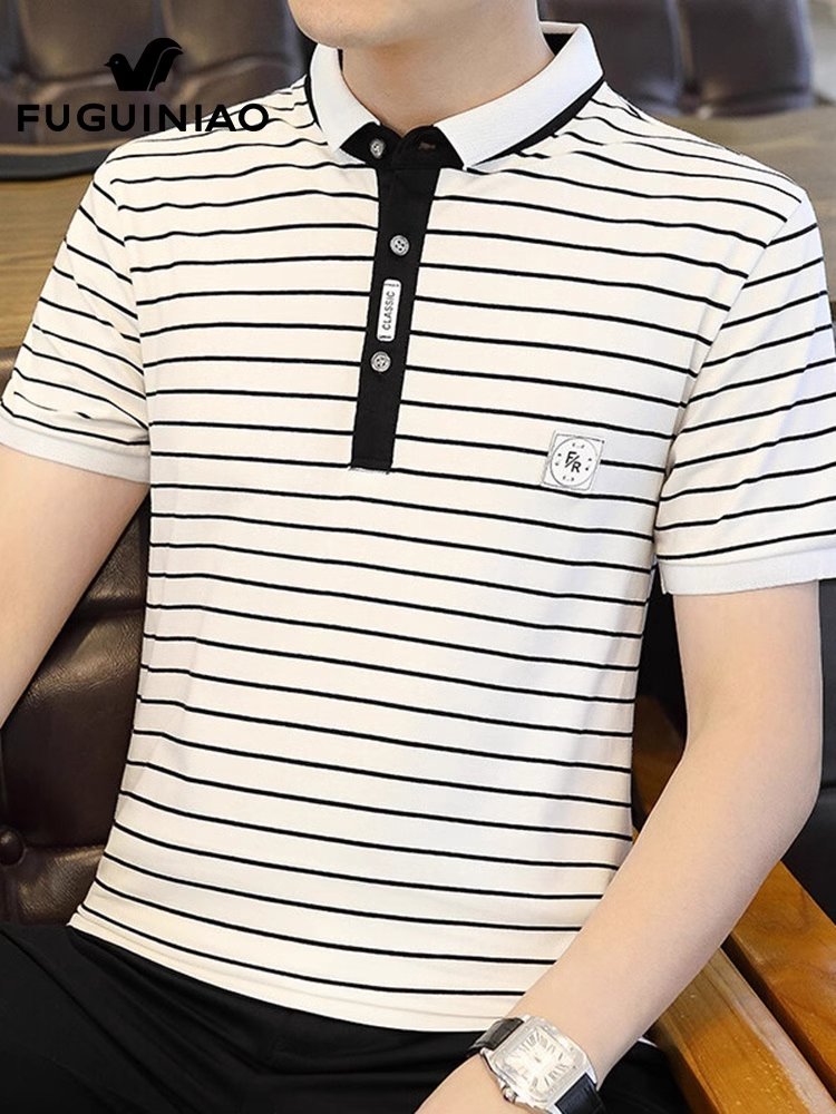 富贵鸟条纹短袖polo衫男士夏季新薄款潮流上衣服休闲翻领t恤男装