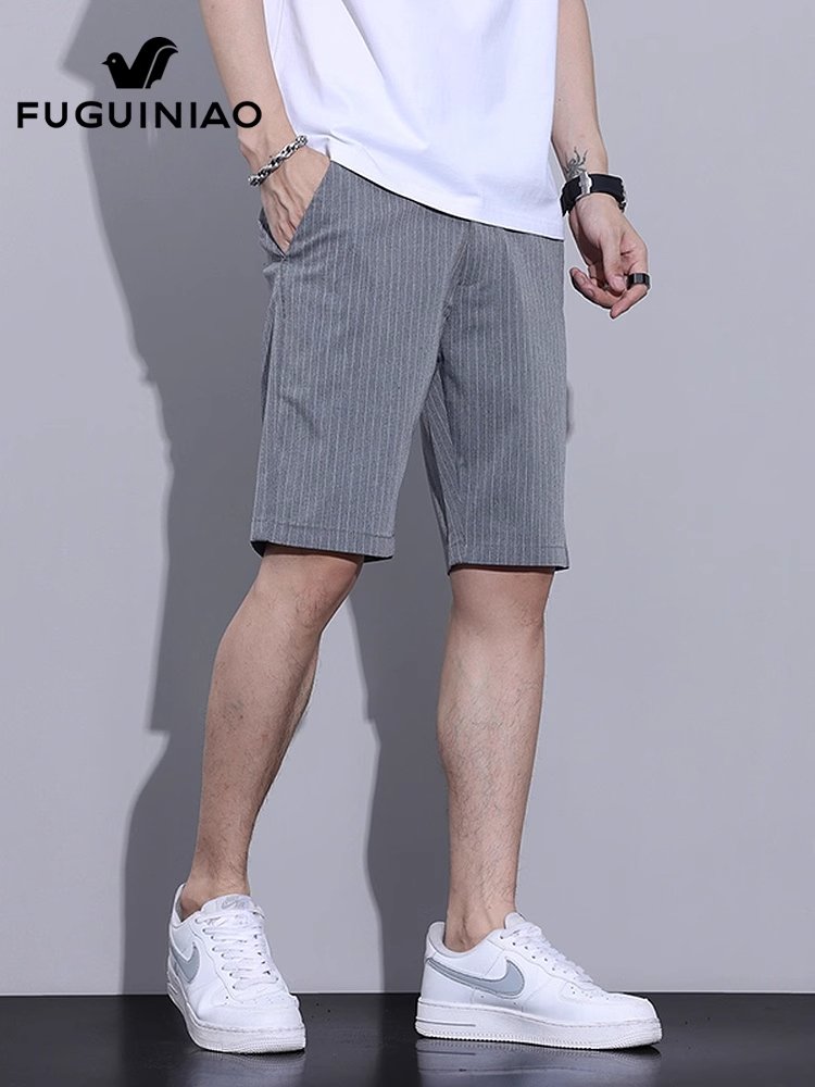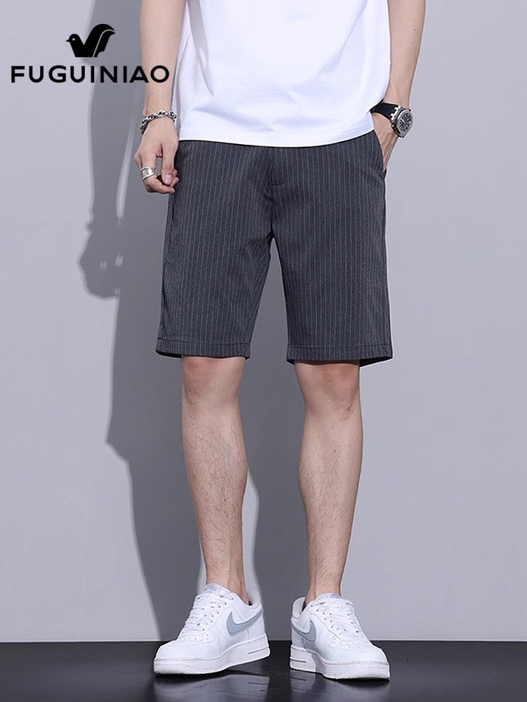富贵鸟条纹休闲短裤男士夏季宽松直筒五分裤新款潮流运动裤子男款