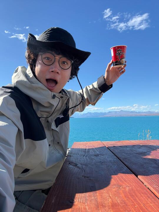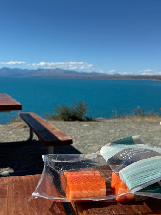 可以直接坐在普卡基湖旁边一边欣赏眼前的风景一边吃超绝的三文鱼