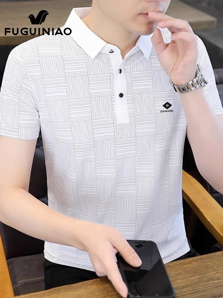 富贵鸟白色短袖Polo衫男士夏季新薄款凉感上衣服休闲翻领t恤男装